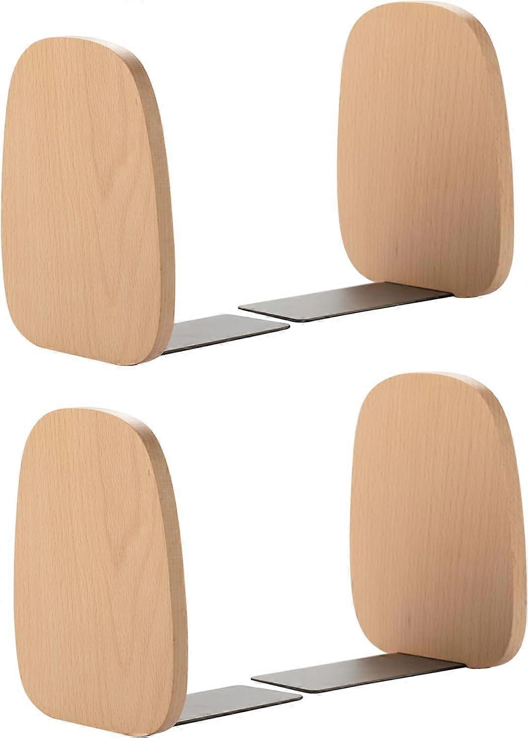 Book Ends for Shelves, Non-Skid Bookends for Heavy Books, Wooden Book Stopper for Home Office and Library (Beech 2 Pairs)