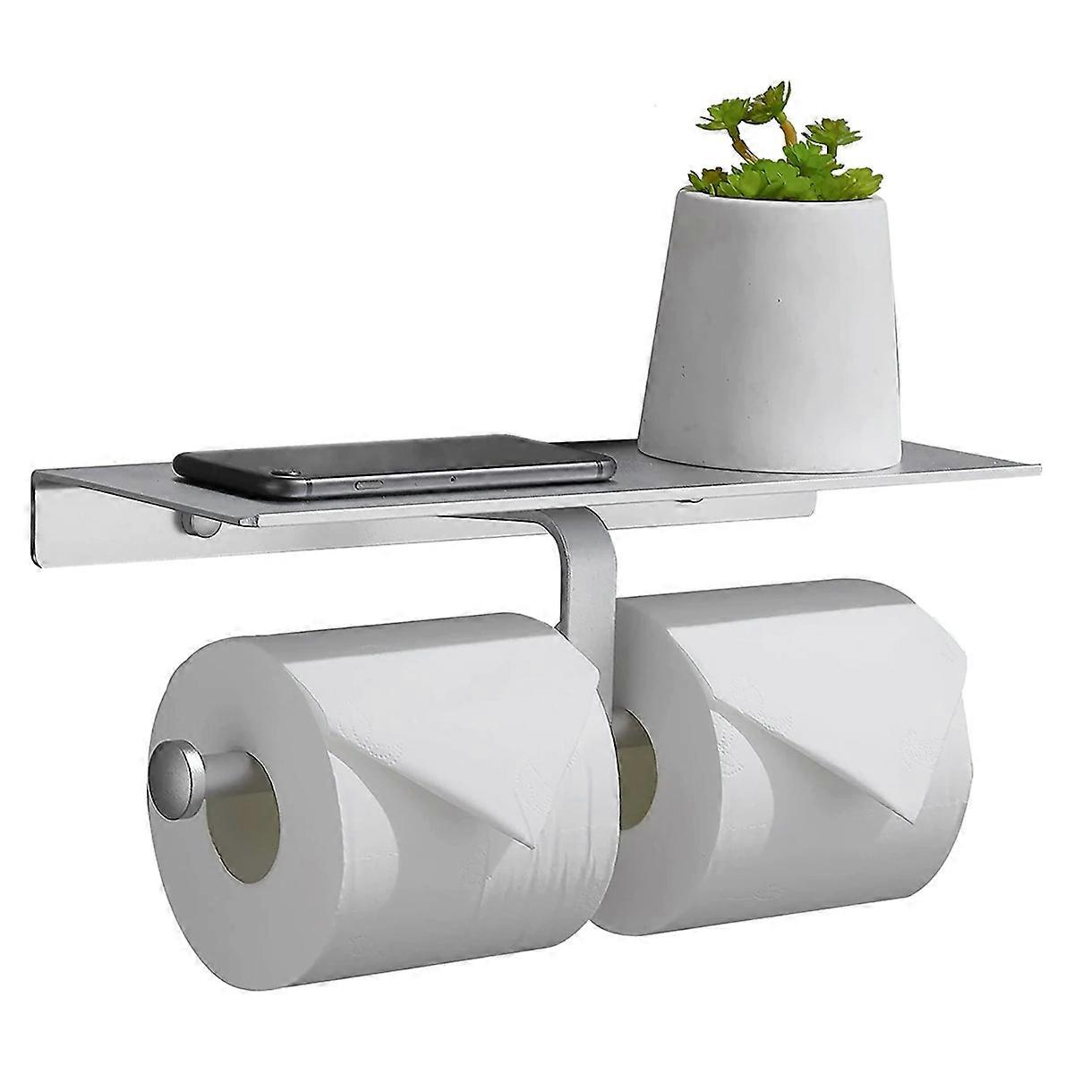 Dual Roll Paper Dispenser with Shelf,Adhesive No Drilling or Wall-Mounted with Screws