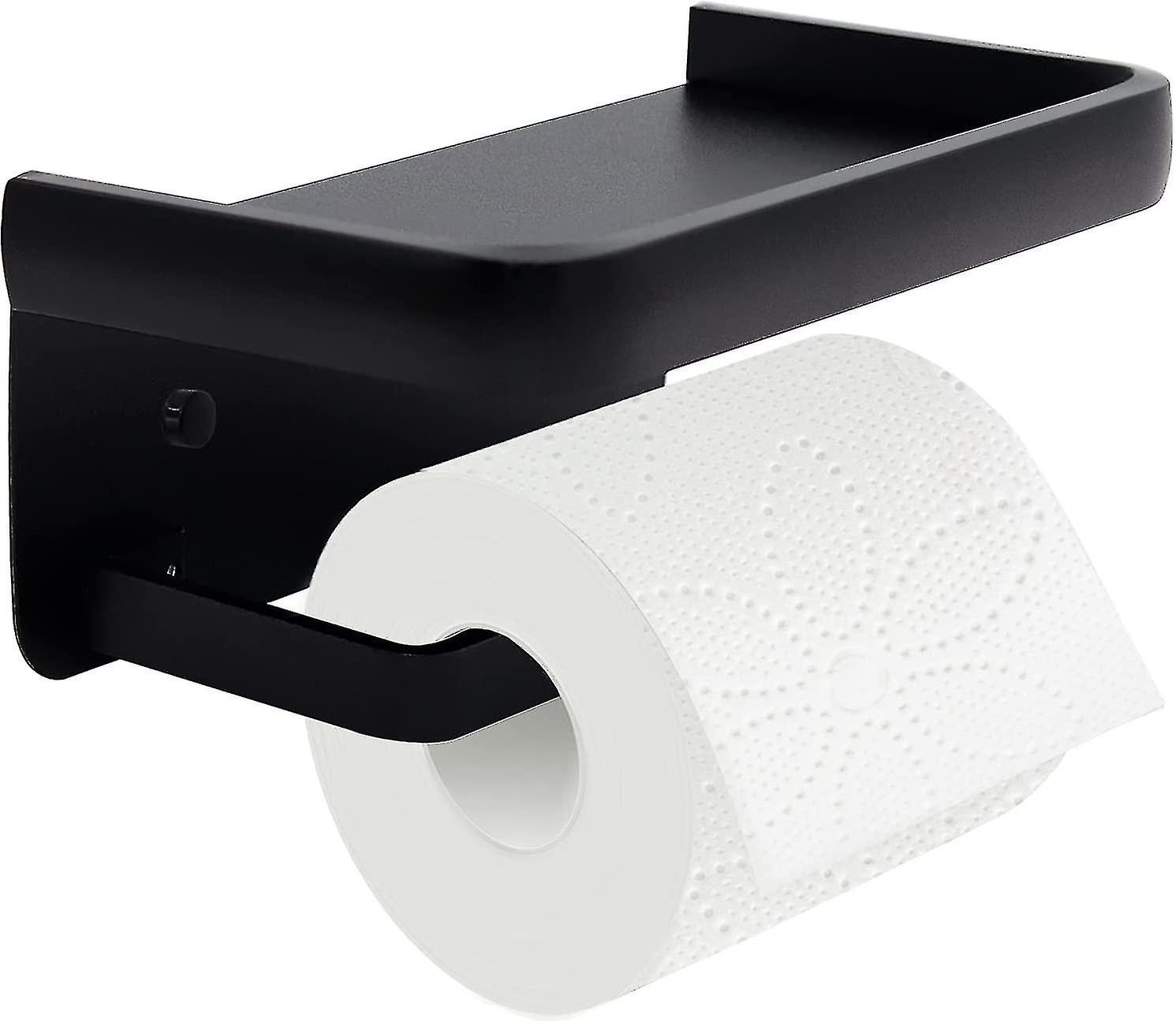 Toilet Paper Holder With Shelf, Black Toilet Paper Holder, Toilet Paper Roll Holder, Bathroom Adhesive Toilet Paper Holder