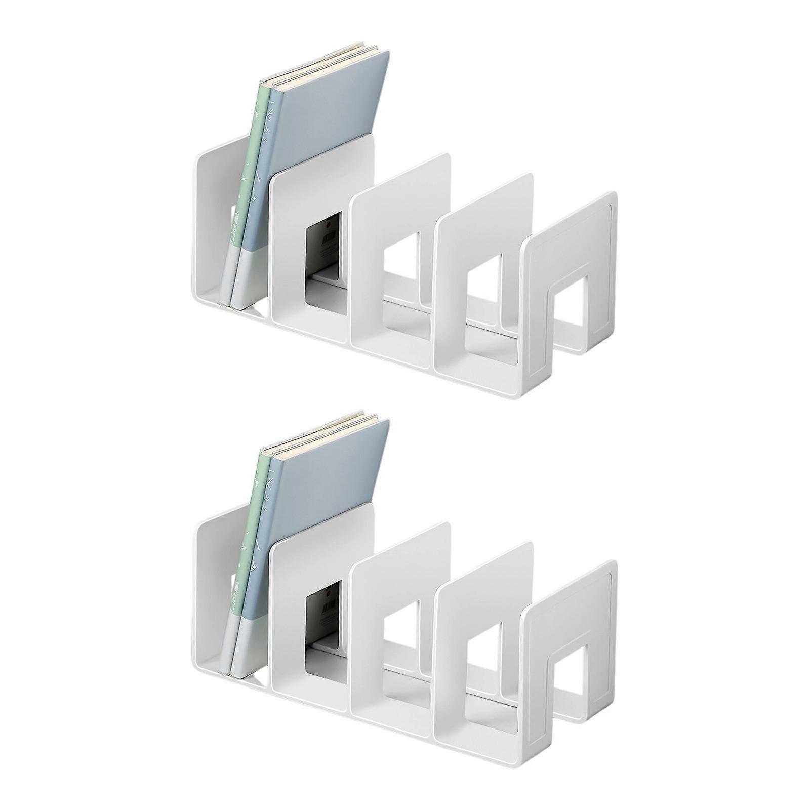 2Pcs Acrylic Bookend for Shelf 4 Compartments Desk Book End Book Magazine Organizers Stand Space Saving Book Stoppers White