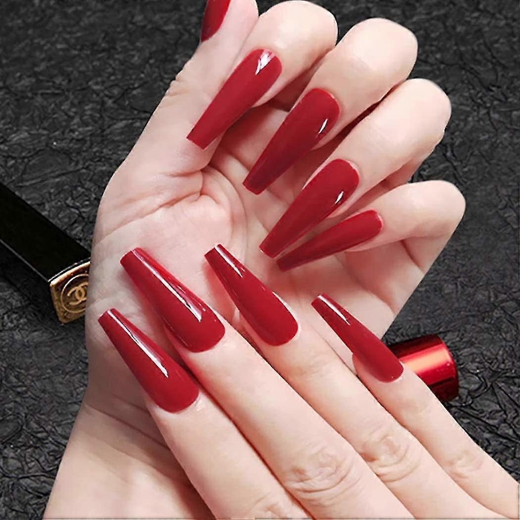 Coffin (red) Fake Nails Long False Nails Ballerina On The Nails Full Acrylic Fake Nails 24pcs For Women And Girls