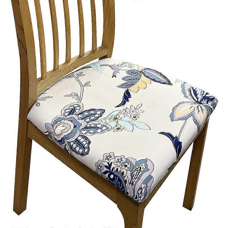 Chair Cover White Blue Floral Leaf Print Stretch Seat For Dinning Kitchen Slipcovers