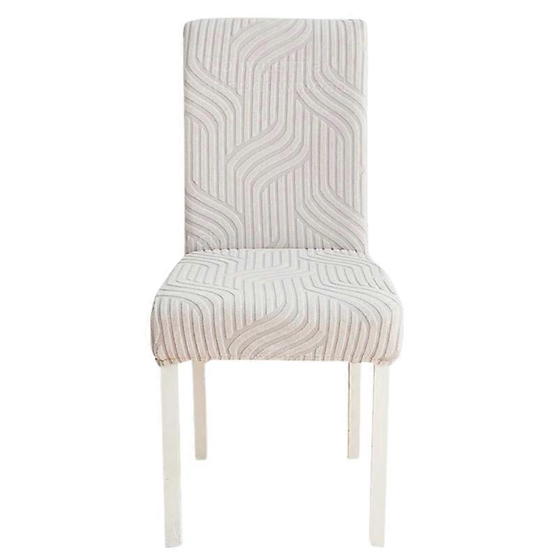 Chair Cover Light Grey Linear Design Anti Dirt Elastic Material For Slipcovers