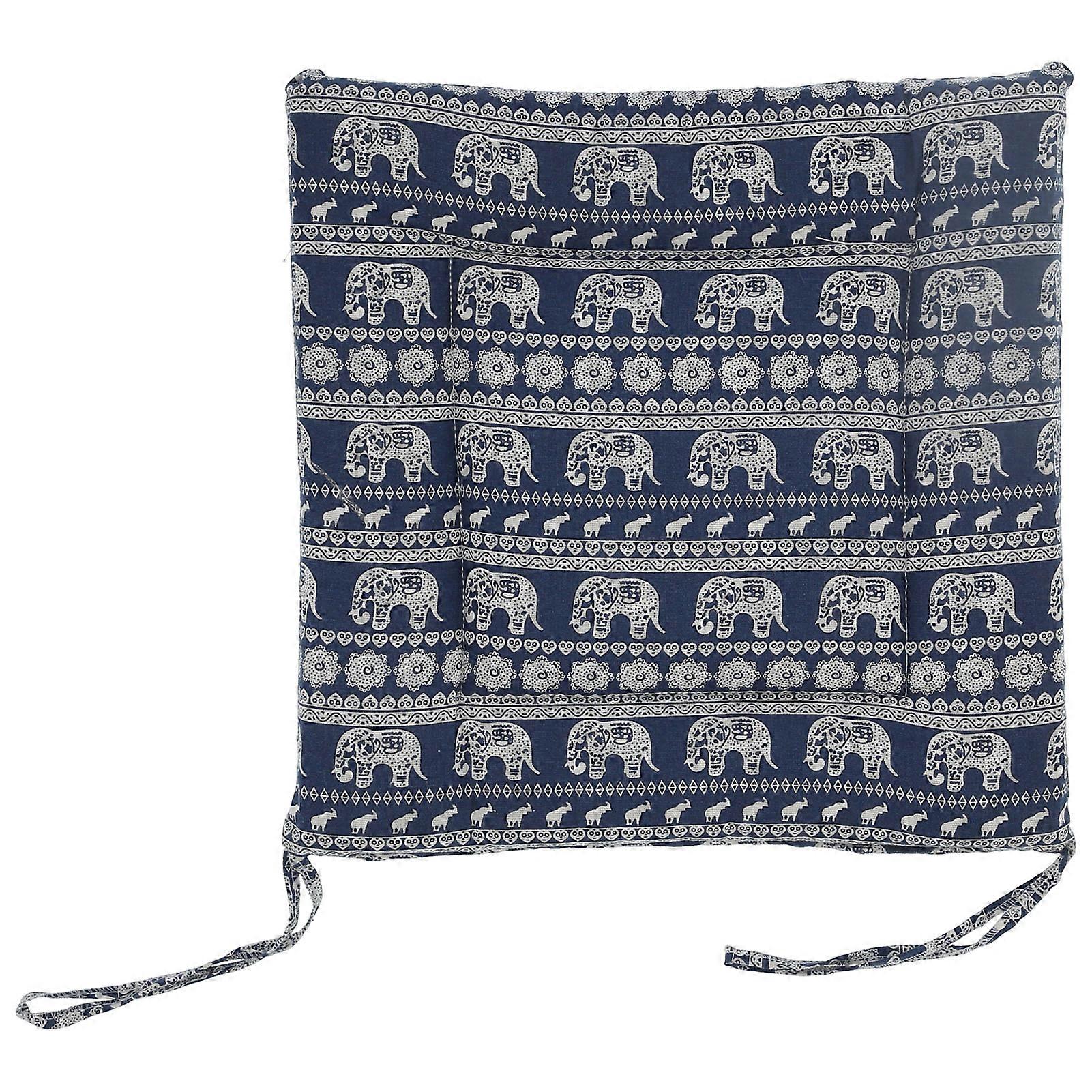Chair Cushion Simple Pure Cotton Linen Thick NonSlip Soft Seat Cushion for Floor(Blue Elephant )