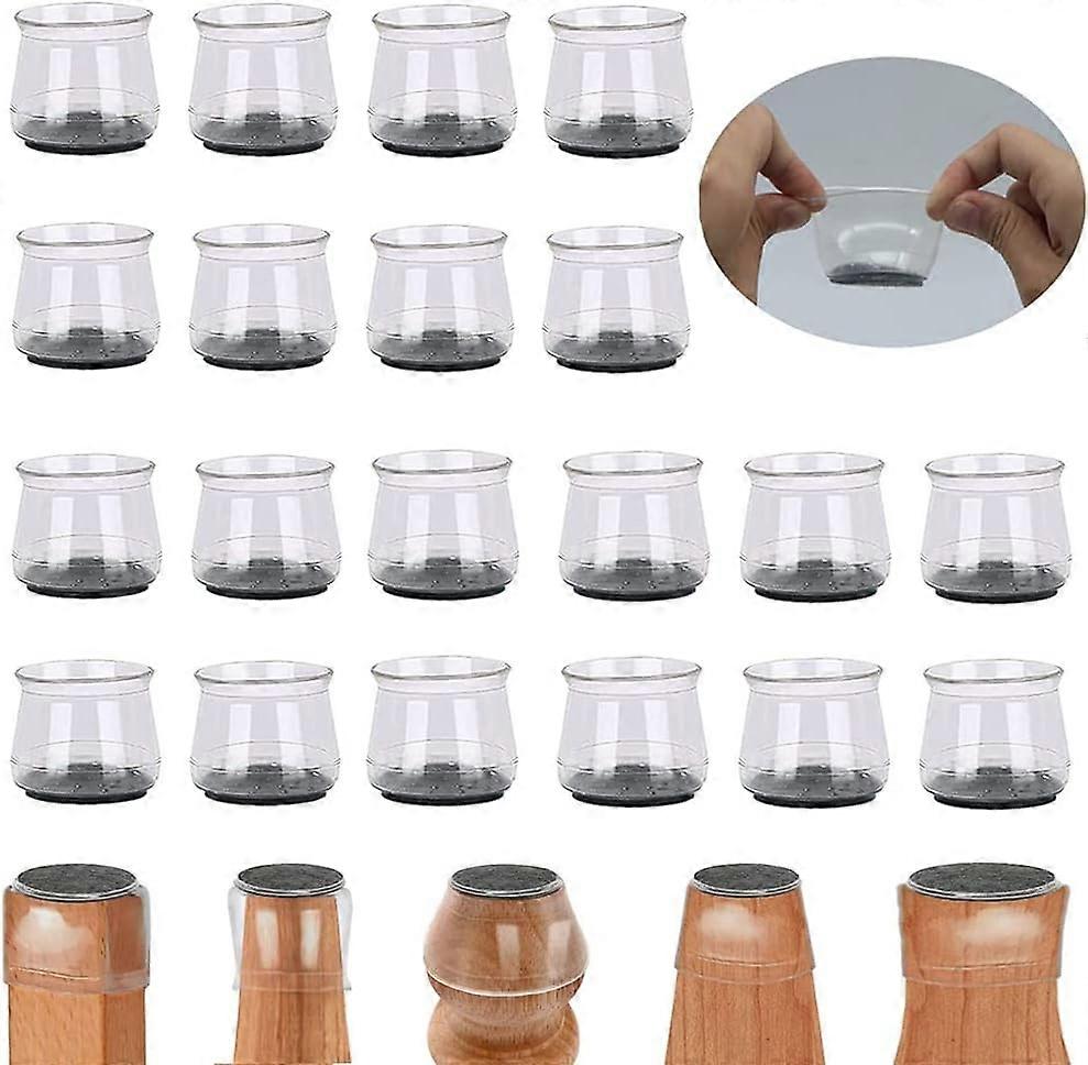 Chair Leg Protector 20Pcs Silicone Chair Feet Caps With Felt Pads, Clear Silicone Round/Square Chair Leg Protectors For Chair And Table Legs