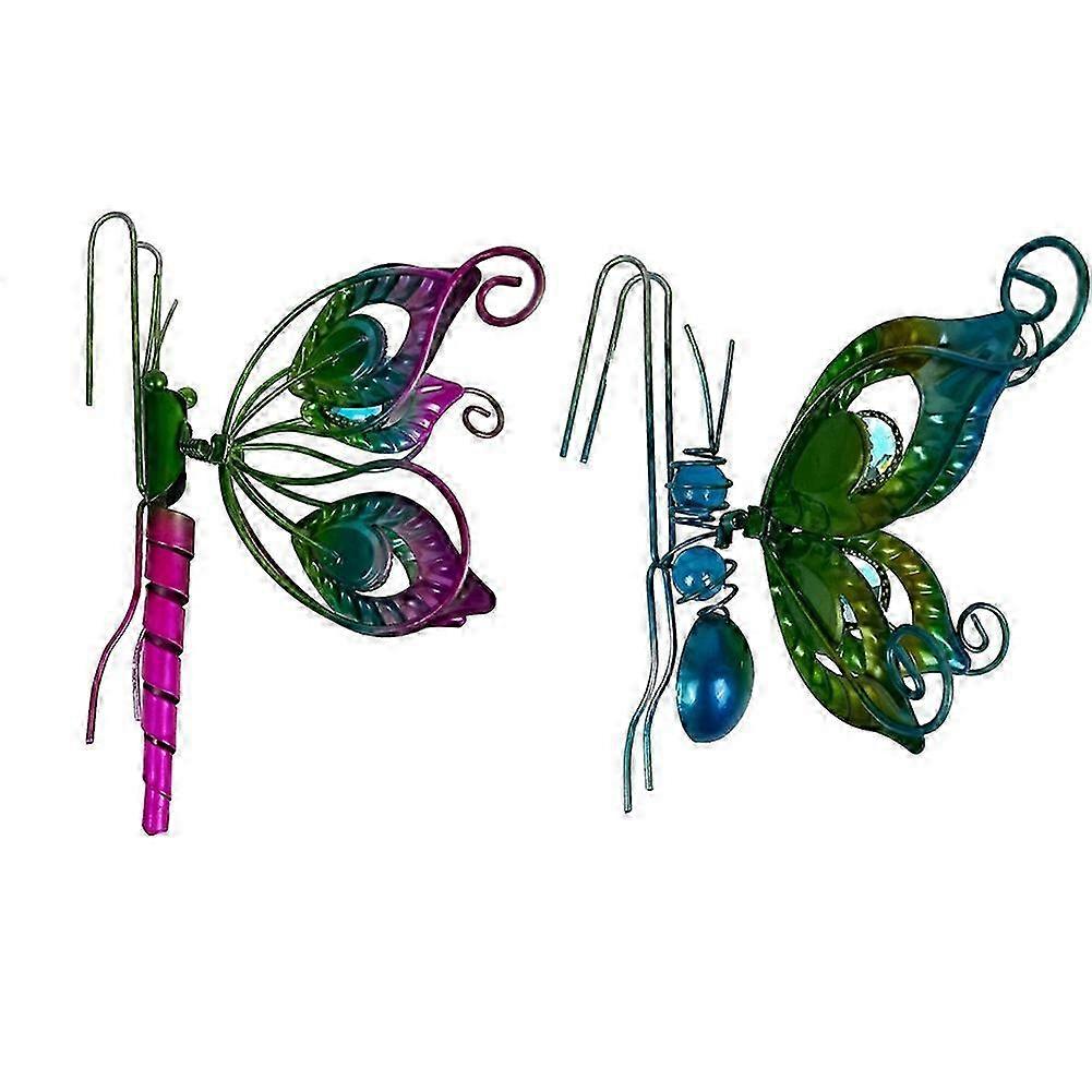 Flower Pot Decoration Pendant Butterfly Dragonfly Metal Green Edge Ornaments Potted Painted Plant D