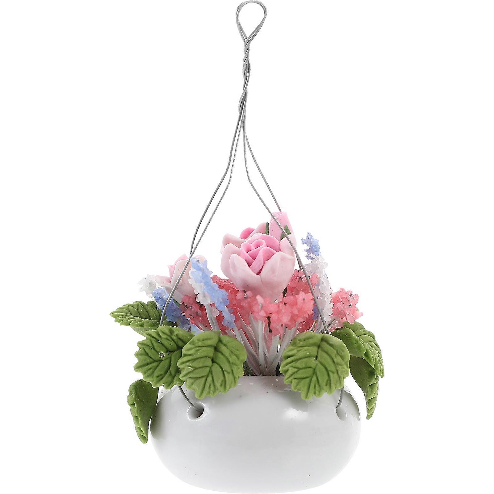 Flower Pot Decorations Mini House Potting Adornment Flower Arrangement Model Pink Green 5.00X3.50X3.50CM 1PC