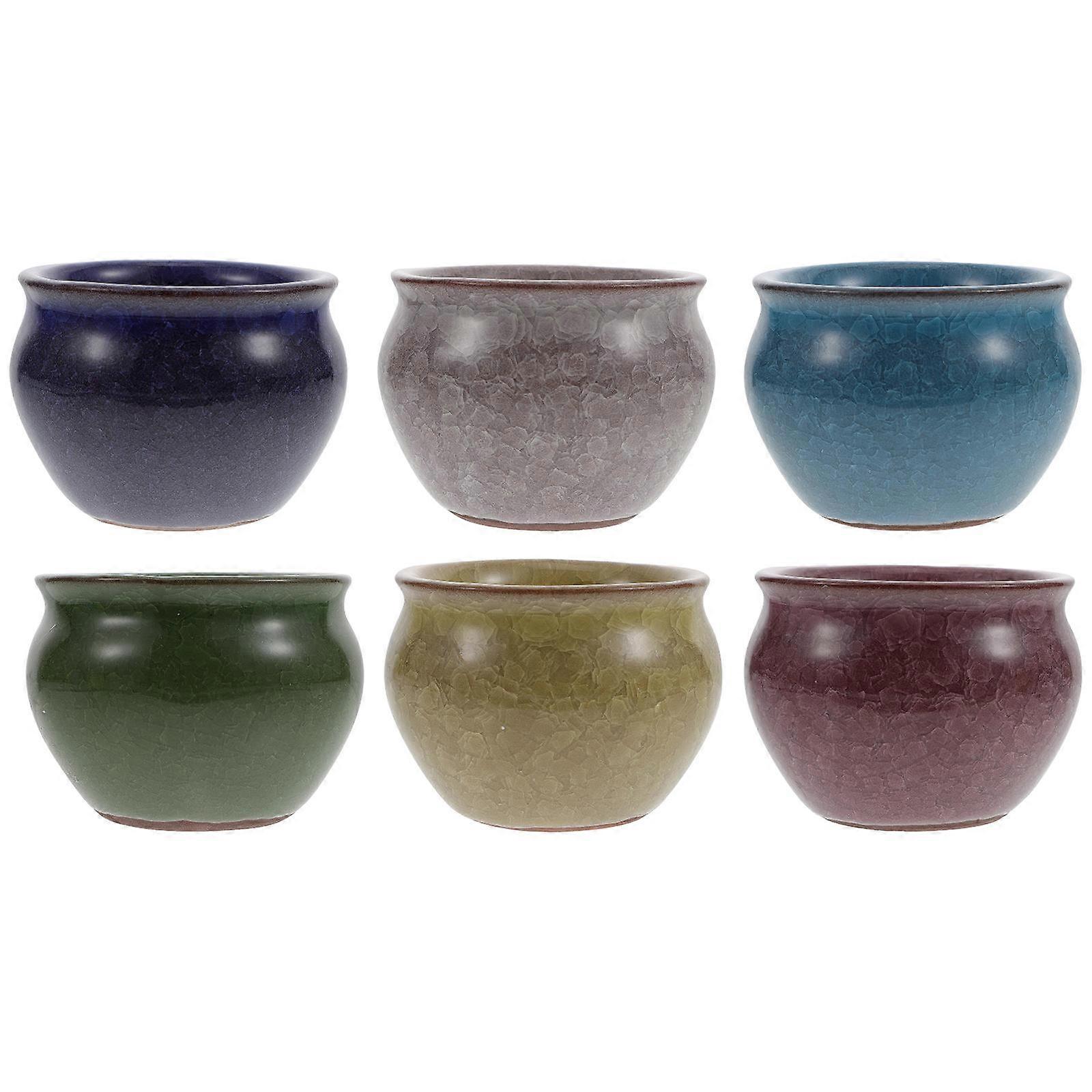 Flowerpot Sets 6Pcs Premium Ceramic Assorted Color Flowerpots Designed For Succulent Plants Growth