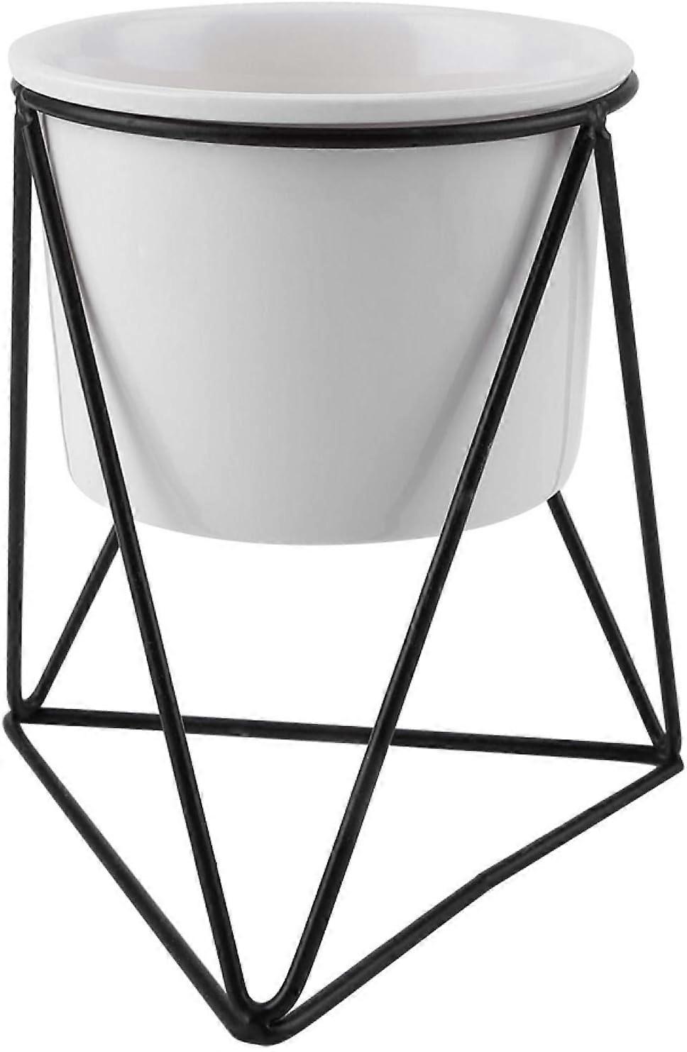 Flower Pot RackCeramic Flower Pot and Triangle Geometric Metal Rack Garden Plant Display Stand Holder