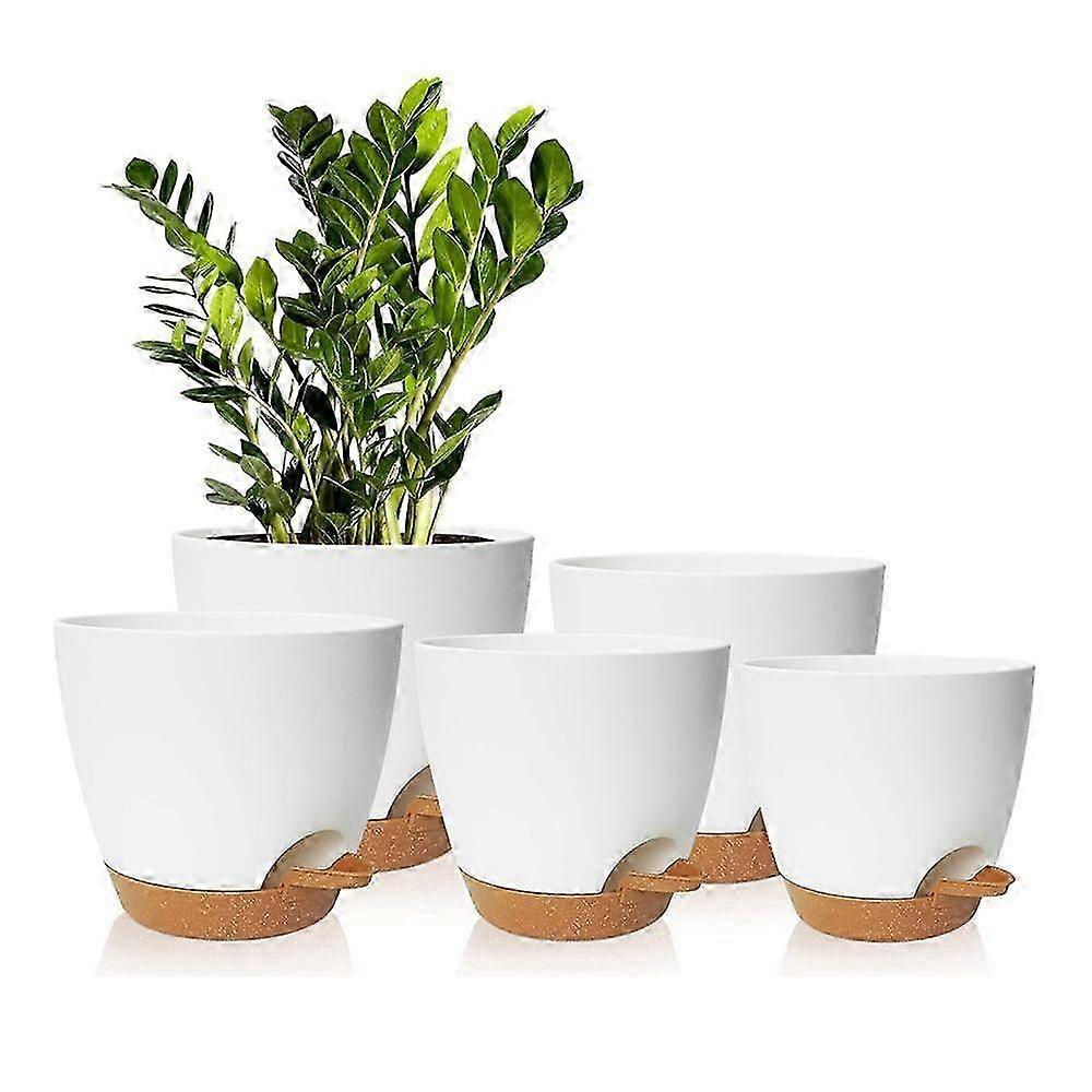 Plant pot with tray, self-watering, white and yellow, 5 pieces