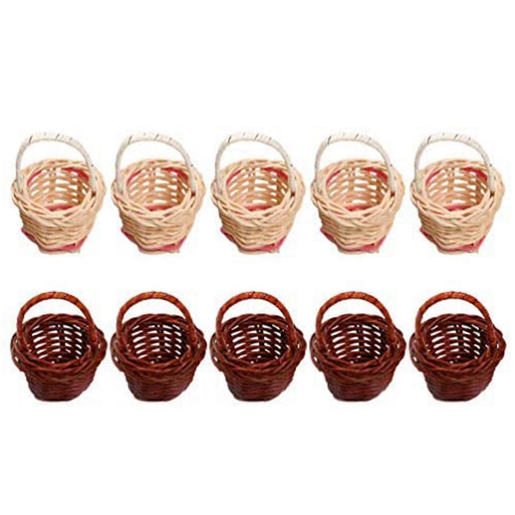 10pcs Mini Woven Baskets with Handles for Plants, Makeup, Organizer, Photo Prop