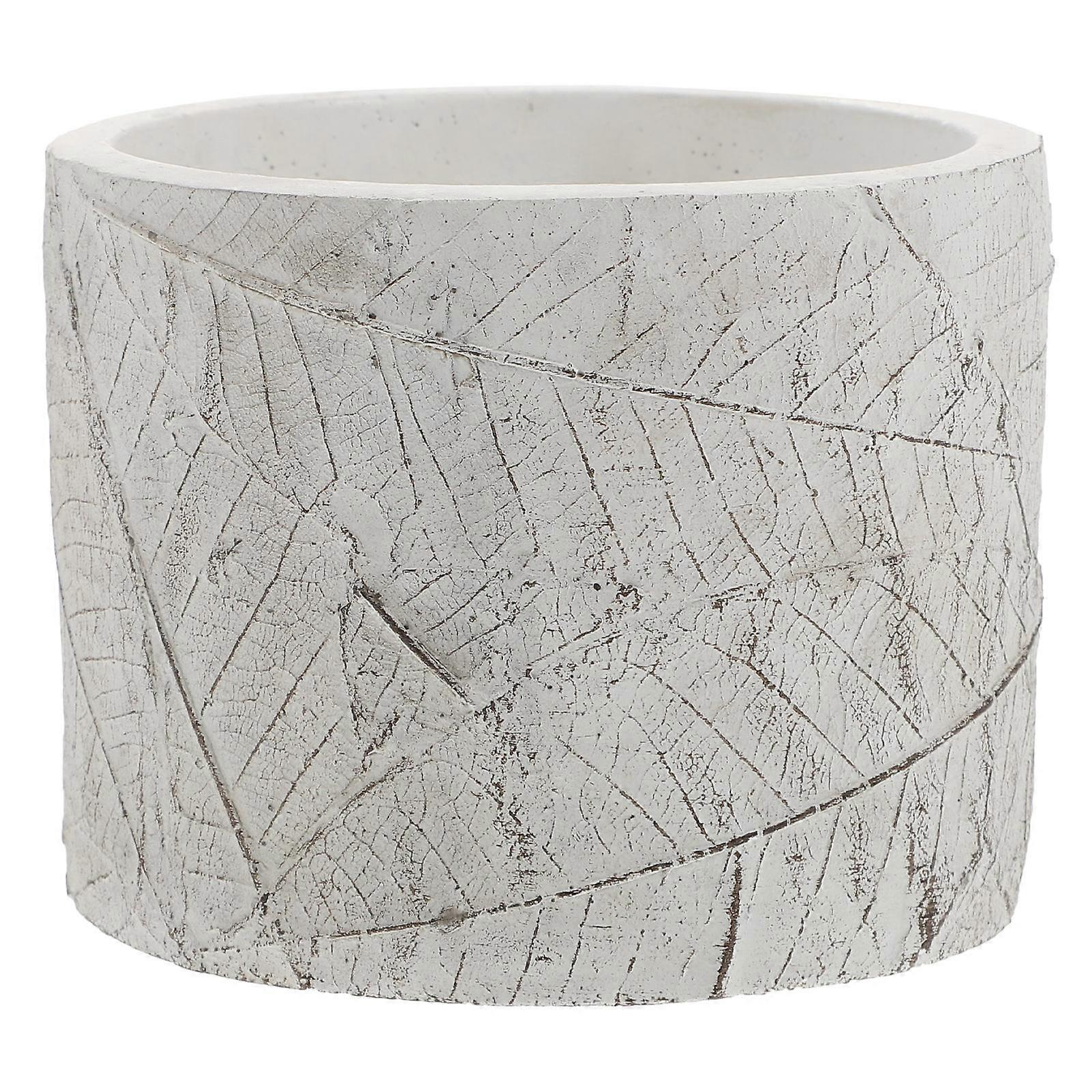 White Concrete Flower Pot with Leaf Texture Design for Plants and Home Decoration 1pc