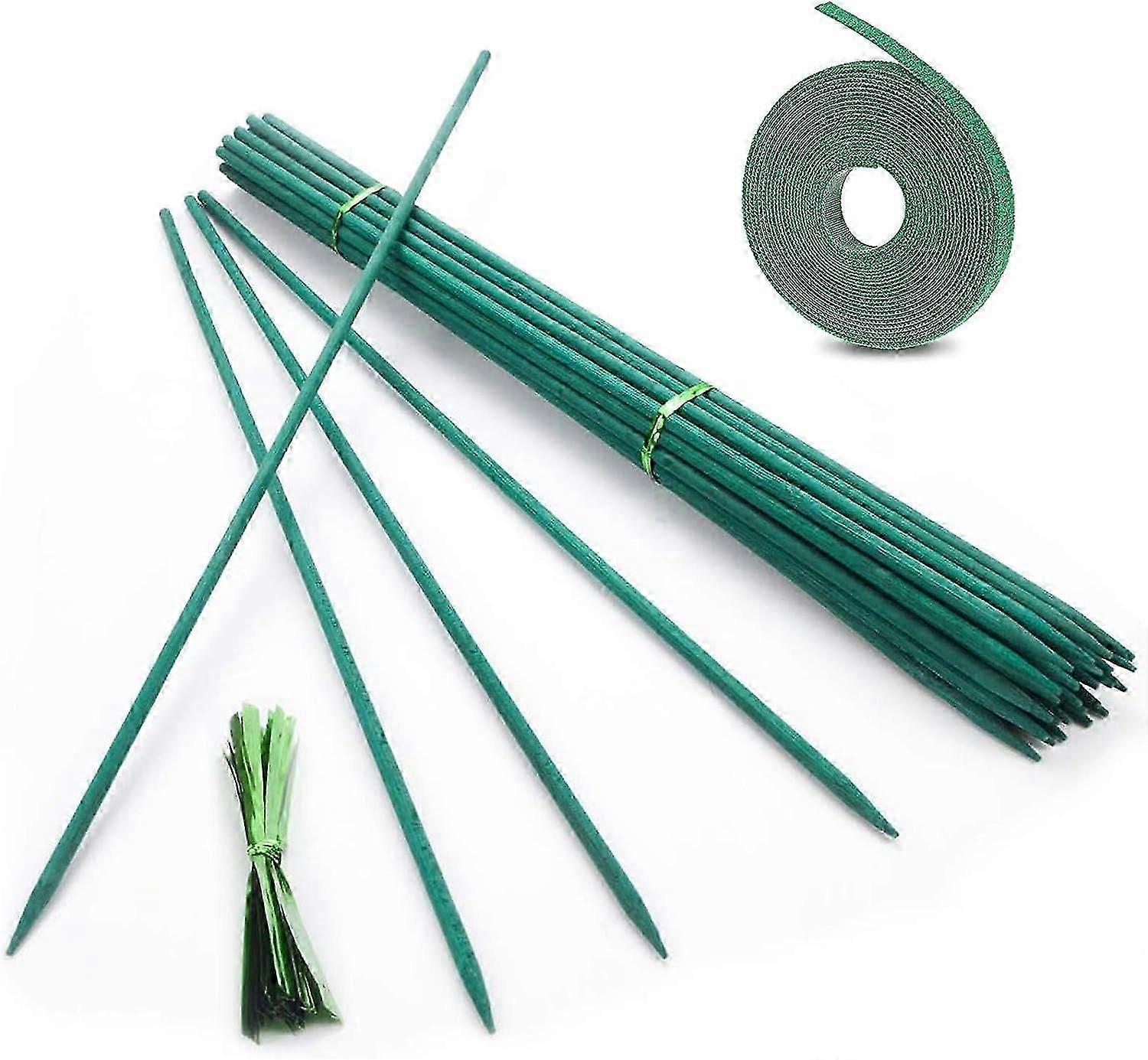 Plant Supports 50 Pieces Bamboo Plant Stick 45 cm Plant Sticks Green Flower Sticks Bamboo Sticks with 50 Pieces Metallic Ties for Home Garden Climbing