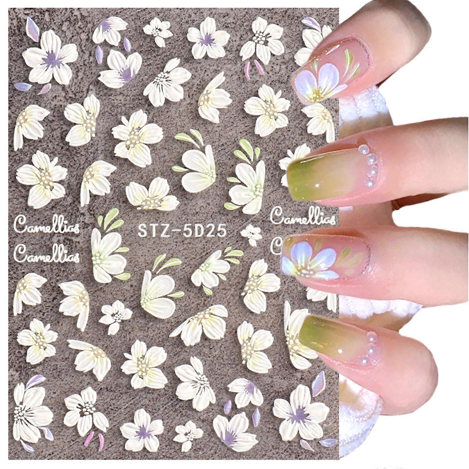 Camellia Flower Nail Art Sticker Decals 5D Hollow Exquisite Pattern Nail Art Supplies Self-Adhesive Nail Art Decorations