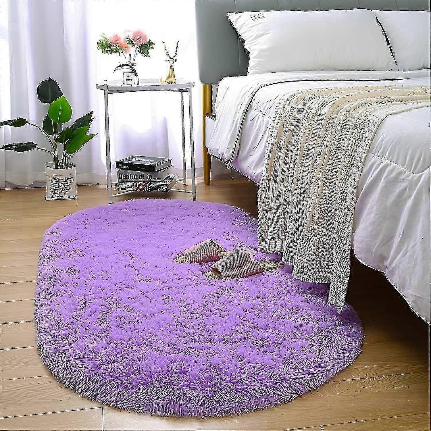 Oval Plush Carpet Soft Shaggy Rug for Kids Children Bedroom Living Room Furry Non-slip Bedroom Mats Home Decoration