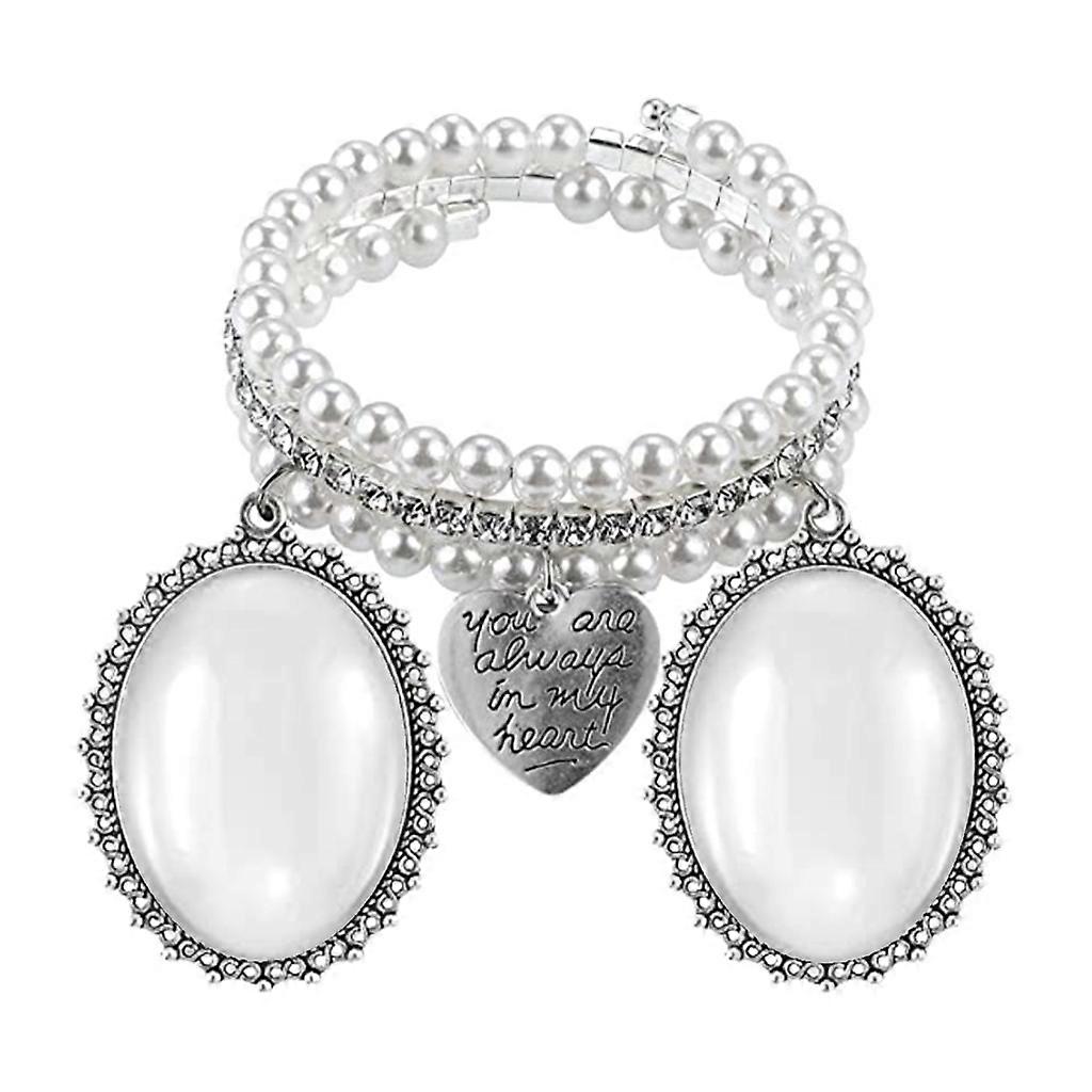 Bouquet Picture Charm Bangle with Oval Glass Cabochon Wedding Photo Pendant