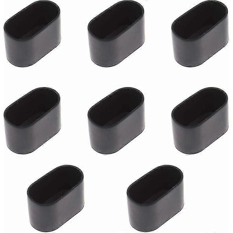 Set Of 8 Oval End Caps Compatible Table Or Chair Legs - Soft Rubber - Anti-scratch - 40 X 20 Mm - Black, -versailles