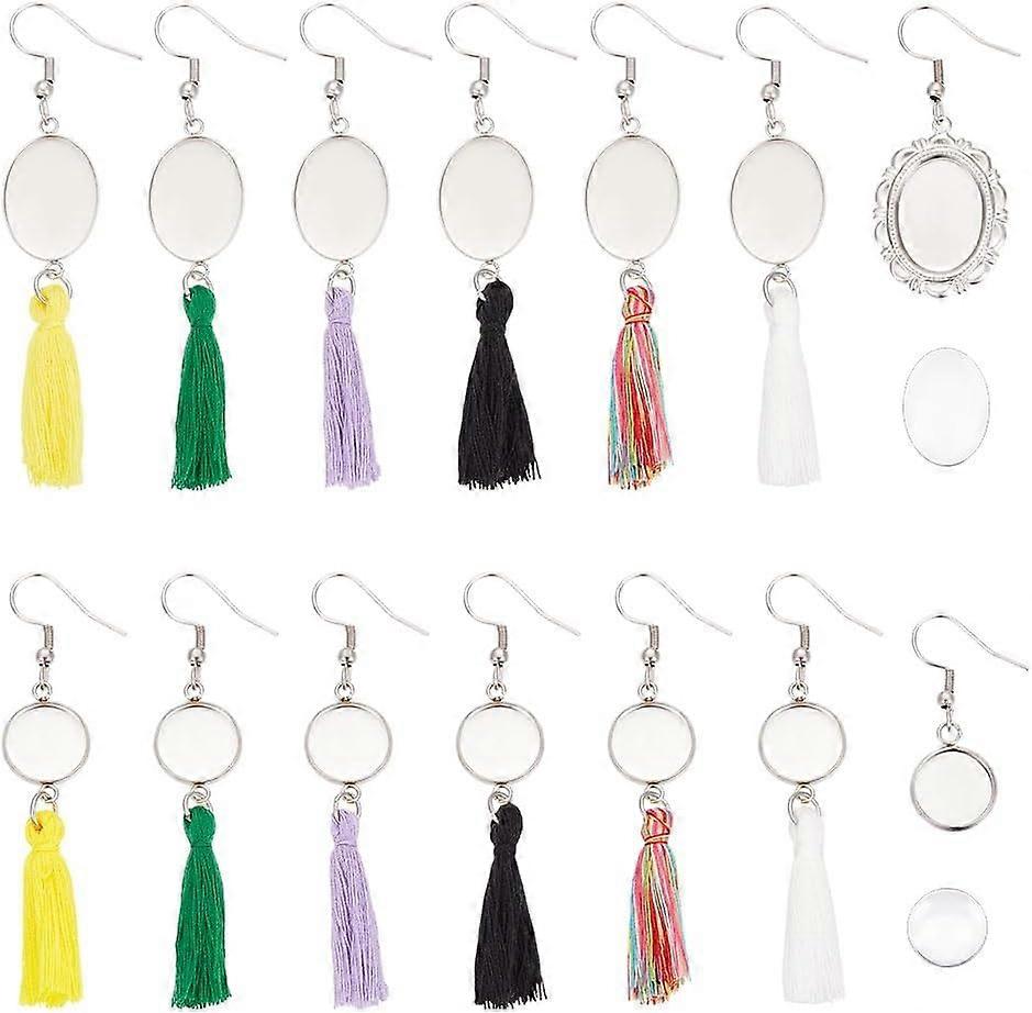 DIY Blank Earring Making Kit Including Oval & Flat Stainless Steel Earring Settings Glass Cabochons Mixed Color 96Pcs/set