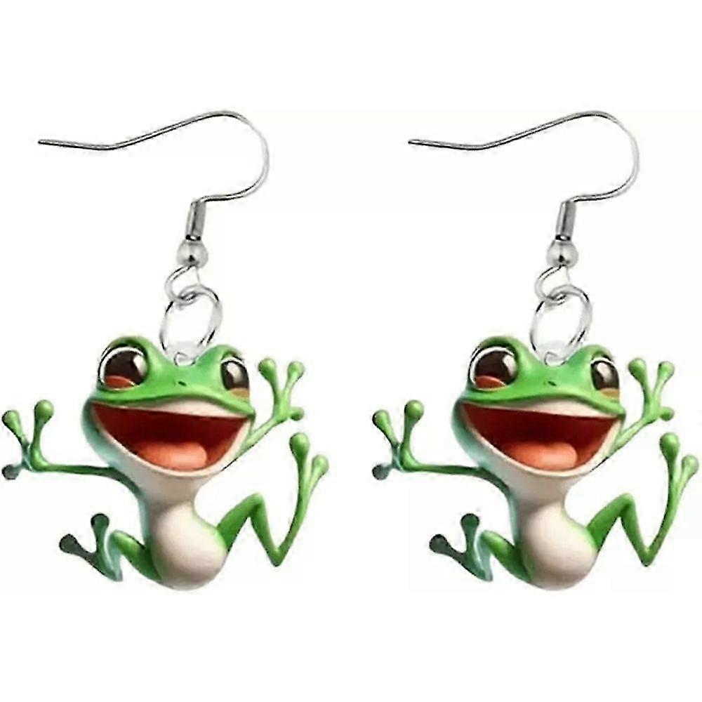 Fun Frog Animal Dangle Drop Earrings, Cute Funky Green Frog Earrings