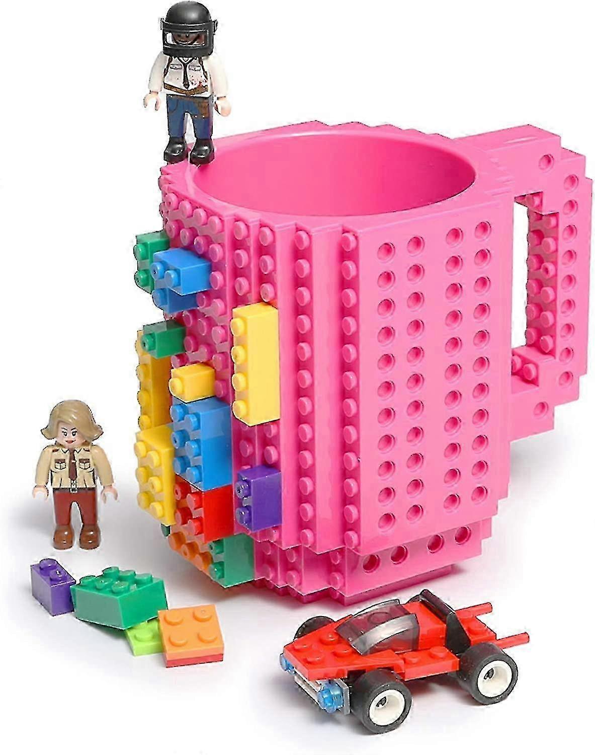 Fun DIY Build-on Brick Coffee Mug, Creative Block Cup Gift for Kids Men Women (Rose)