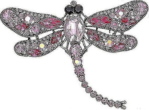 Dragonfly Brooch Pin With Imitated Crystal Charm Flying Insect Alloy Brooch Pin(pink