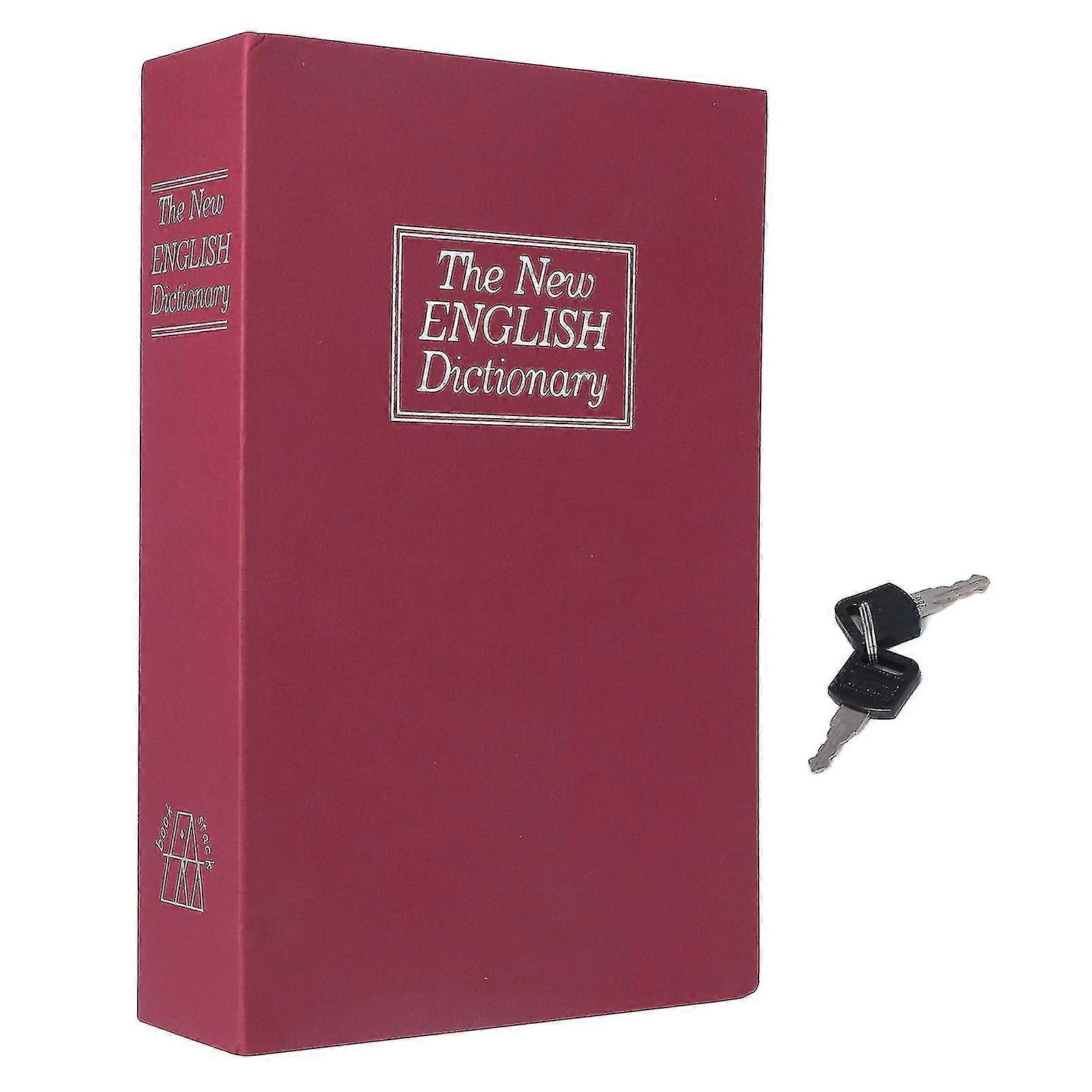 Imitation Books Diversion Book Safe with Key Lock - Realistic Stainless Steel Liner - Portable Storage Box (M Red)
