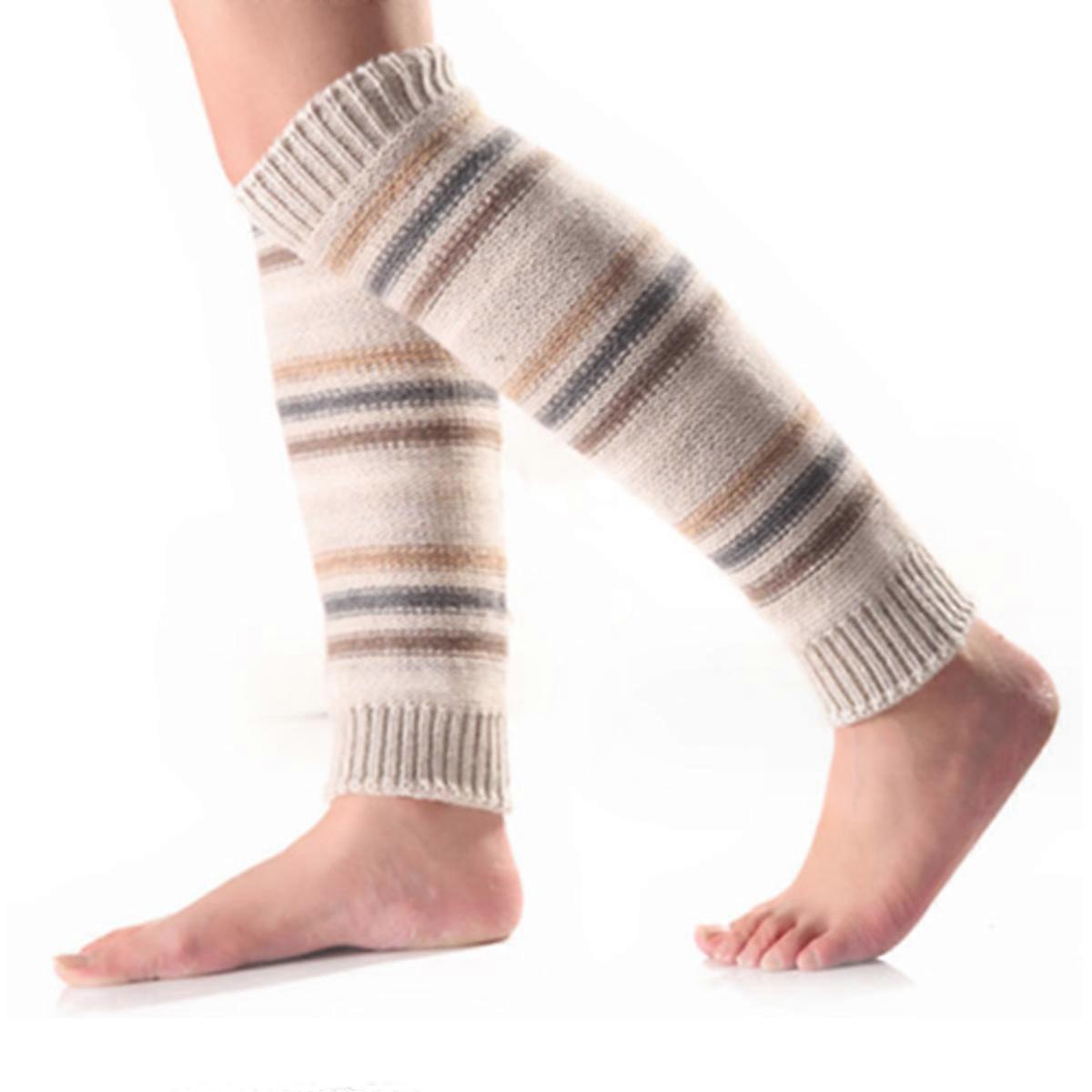 Horizontal Stripe Colour Blocking Women's Fashion Knitted Woolen Warm Sock Covers Boot Covers Leg Warmers Girls Vintage Knit Footless Knee Highs Long