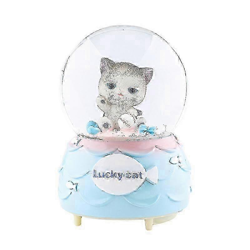 Resin Cat Crystal Snow Globe Decoration with Battery Operated Glittering Light and Music