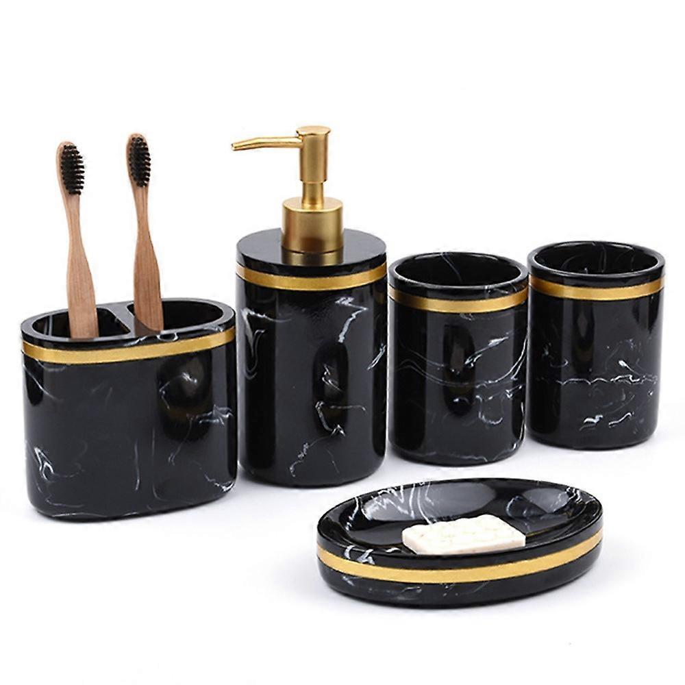 Resin Bathroom Accessories Set 5Pcs Marble Pattern Toiletry Organizer for Hotel / Home