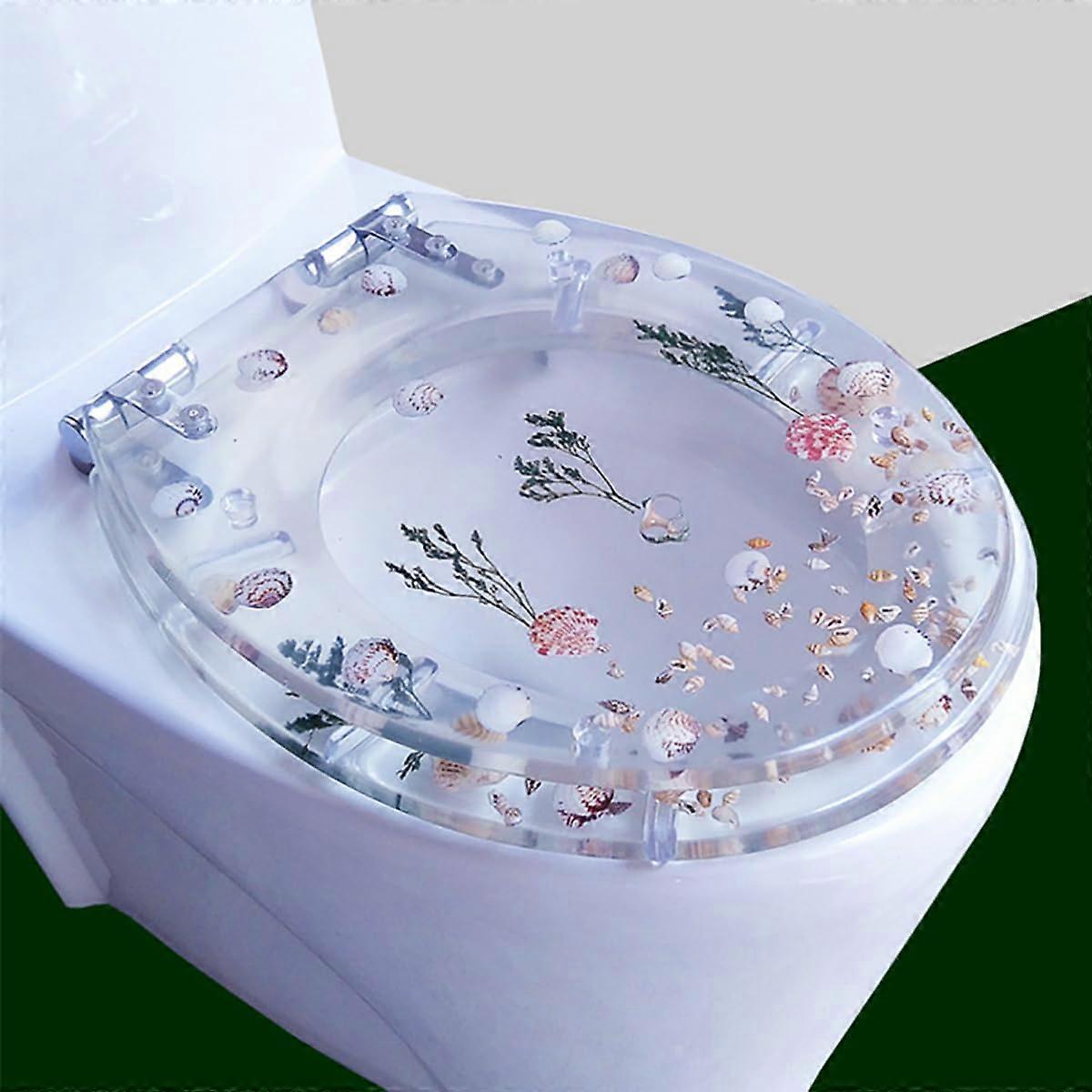 Resin Toilet Seat, Slow Close Toilet Seat with Transparent Shell Cover and Stainless Steel Hinges, Acrylic Toilet Lid, Ocean Series, A