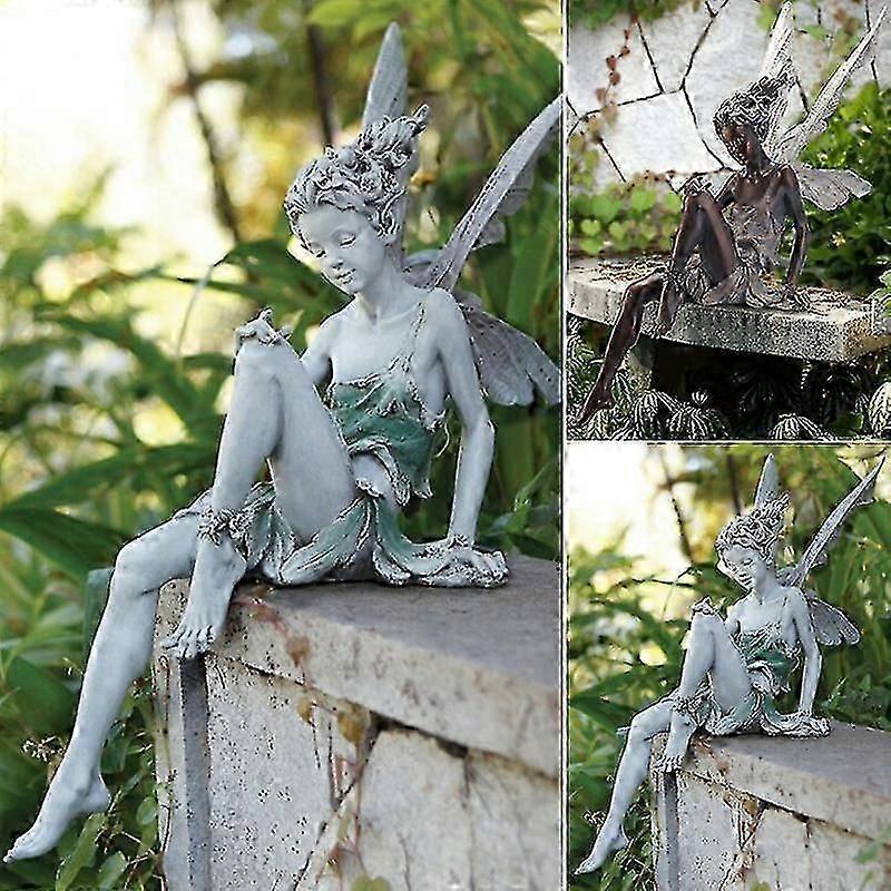 Add a playful atmosphere to the garden with this seated fairy statue. The fairy sits in a charming pose on a garden wall, table, terrace or deck. Features The seated fairy statue adds a magical touch to your garden with its unique design. This soft sitting fairy statue will take a break from the hard work of the day and brighten up any dark corner of your home or garden. Made from durable resin for lasting beauty, features delightful intricate detailing of her hair, wings and green fairy dress. The two-tone finish gives this masterpiece a charming appeal. It can be placed near a lawn, fountain or pond area. The fairy statue is the ideal gift. Specification Material: resin + PVC Size: 18*12*12cm Weight: 261g Package includes 1 * Sitting Fairy Garden Statue