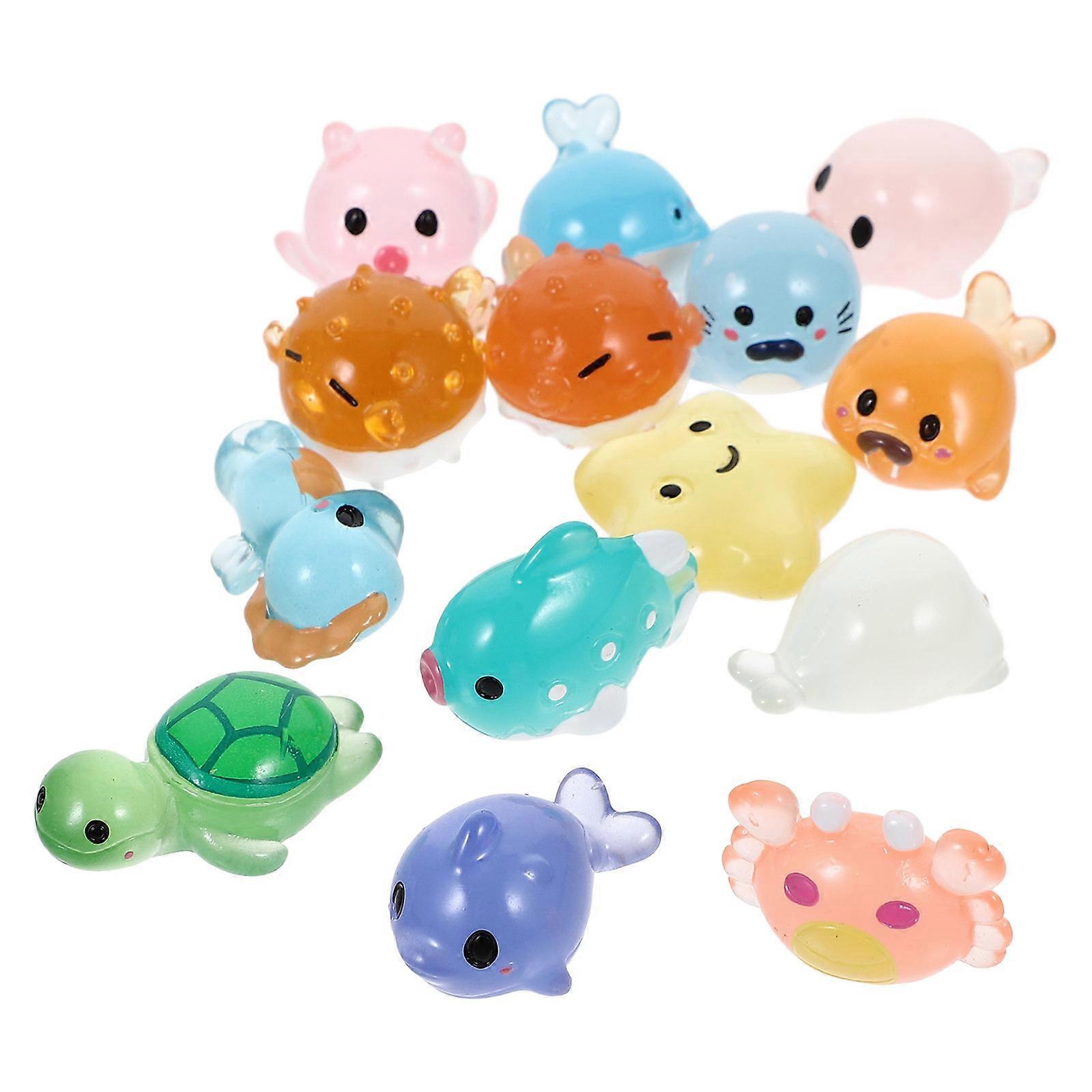 Resin Ocean Animal Figurine Fish Tank Landscape Decor Luminous Design For Indoor Aquariums 14Pcs