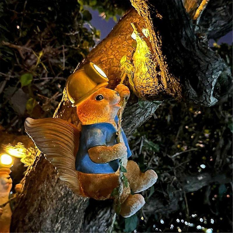 Resin Animal Decorations Solar Lights Garden Bunny Squirrel Climbing Wall Hanging Garden Homestay Landscaping(squirrel)