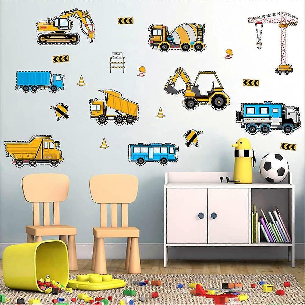 Mechanical Construction Vehicles Wall Decals Excavator Crane Tower Cementtruck Wall Stickers, Children Kids Baby Home Room Nursery DIY Decorative Adhe
