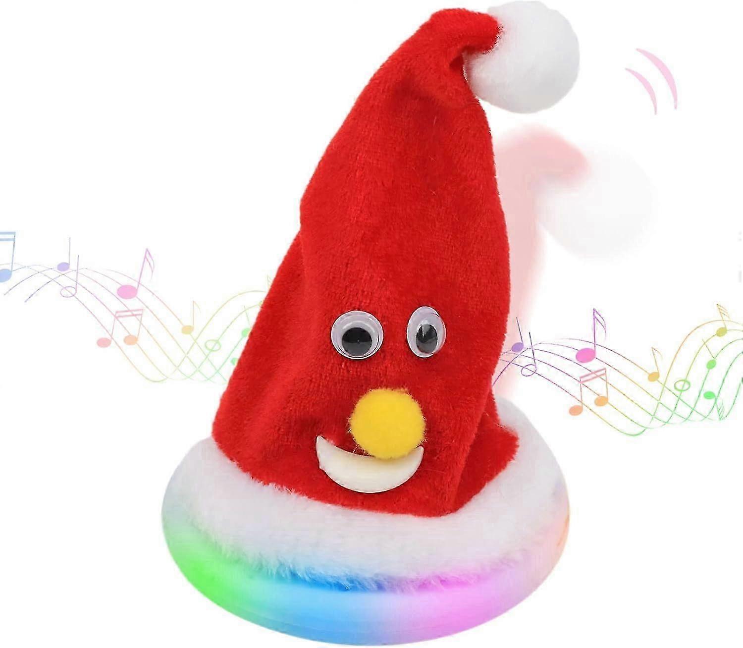 Singing Christmas Hat Toy Dancing Glowing Rockin Shaking Electric Interactive Animated Toy Plush Buddy Gift for Toddlers Kids, Red, 8''