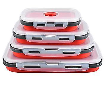 Red 4 Pcs Of Square Silicone Folding Lunch Box, Refrigerator Storage Fresh-keeping Box, Bento Box Az22225