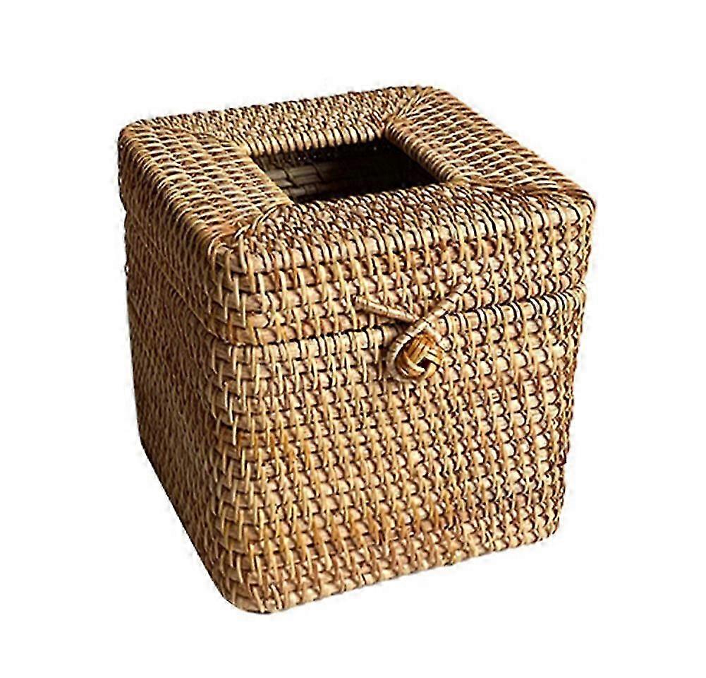 Square Rattan Tissue Box,5.9x5.9x5.9inch Napkin Storage Box Tissue Box Holder for Kitchen Living Room Covered Tissue Box Square Decoration