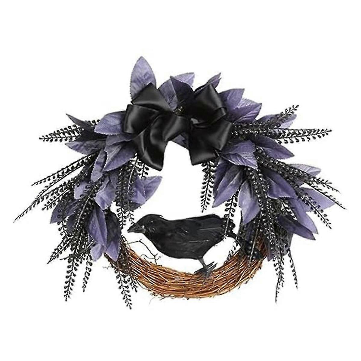 Halloween Wreath For Front Door, Halloween Crow Wreath With Bow Tie For Halloween Decoraion Artific