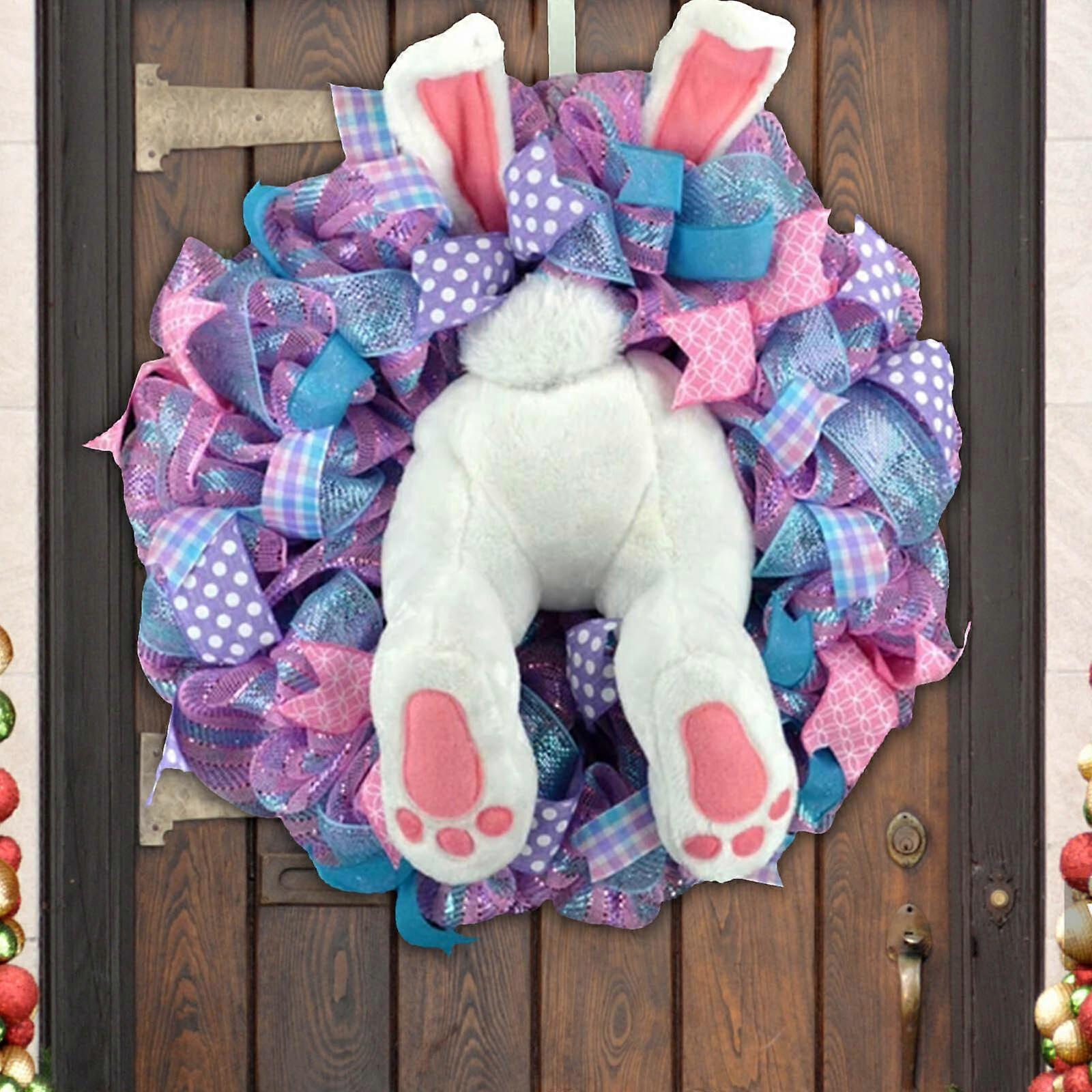 Easter Wreaths for Front Door, Easter Door Wreath with Bunny Butt Ears Decorations