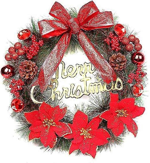 Christmas Wreaths for Front Door, 40 cm Christmas Door Wreath Winter Artificial Christmas Garland Decoration with Bow Flowers Ball for Indoor Outdoor