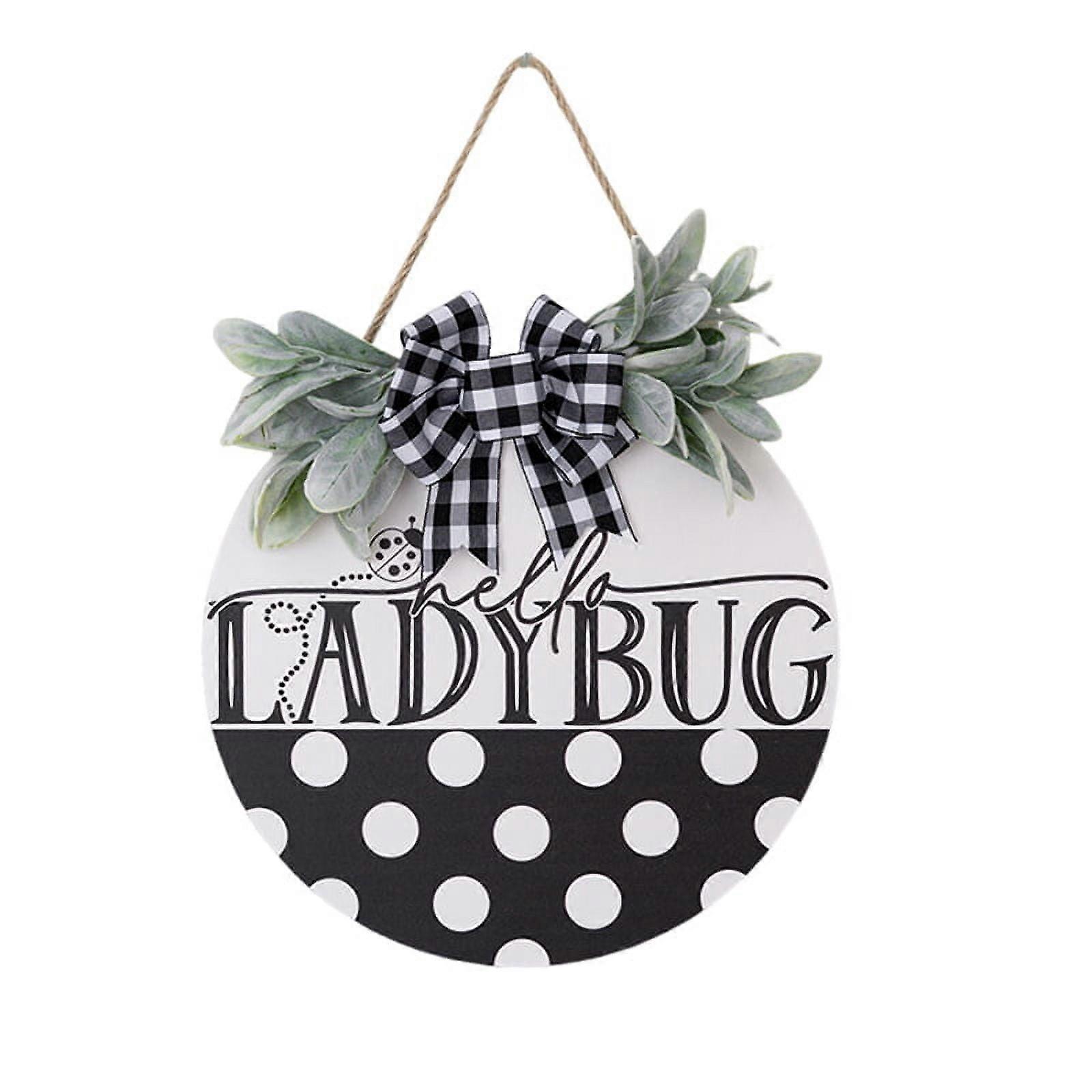 Black Spring and Summer Welcome Sign for Front Door, Rustic Ladybug Decorative Wall Sign, Suitable for Porch, Patio