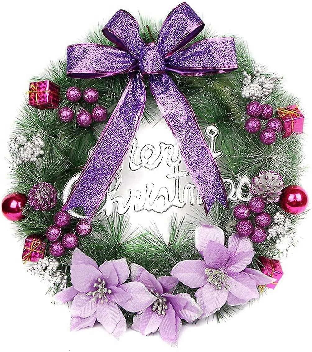 Christmas Wreaths for Front Door, 40 cm Christmas Door Wreath Winter Artificial Christmas Garland Decoration with Bow Flowers Ball (D-4-0)