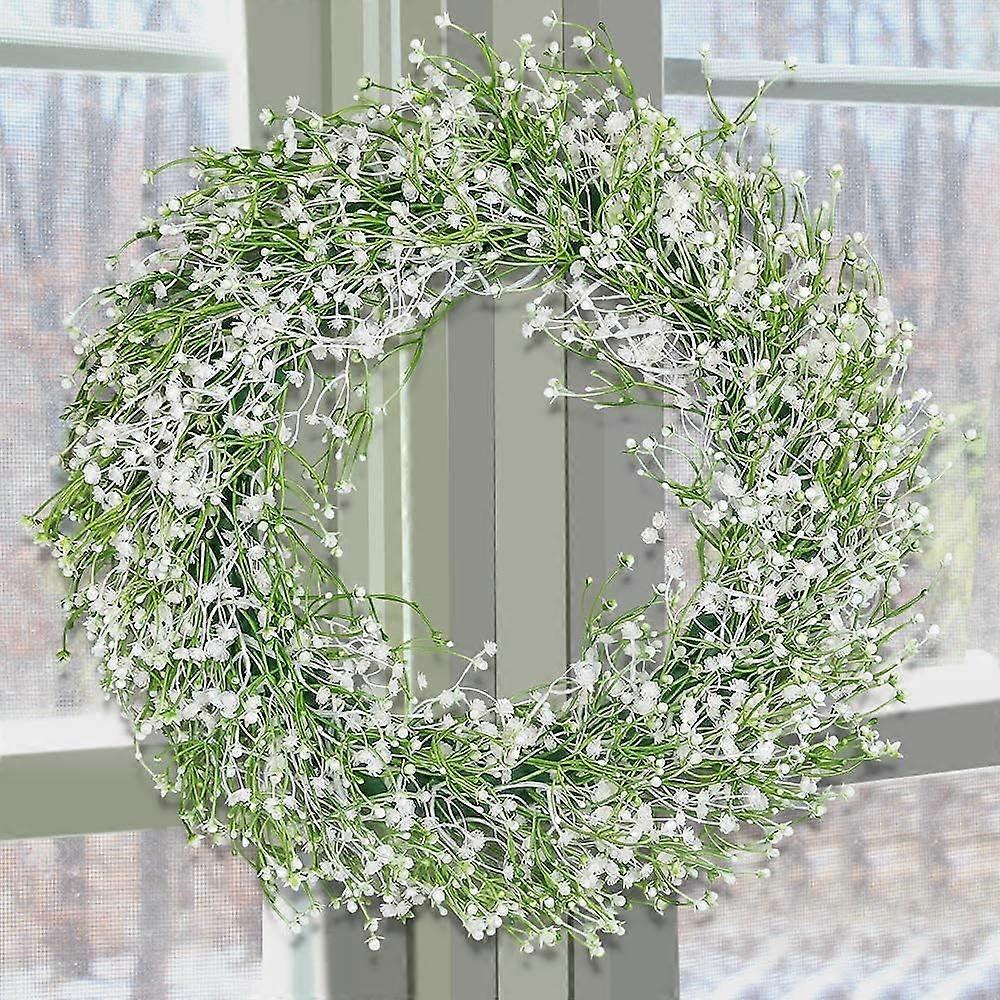 Gypsophila Artificial Flowers Wreath for Front Door, Artificial Hanging Wreaths, Baby's Breath Flower Wreath, Spring Wreath White, Welcome Door Wreath