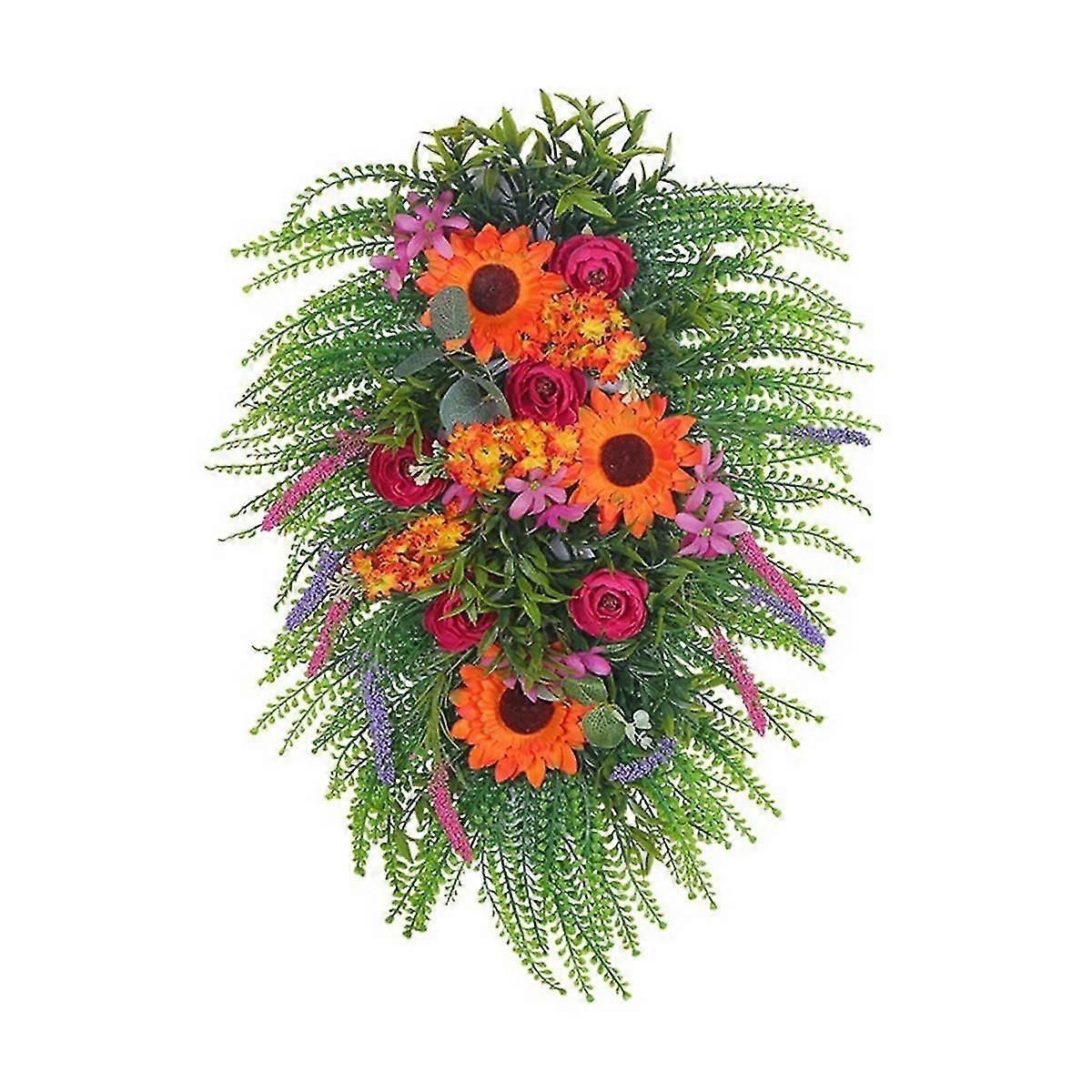 Spring Lavender Wreaths for Front Door, Artificial Spring Summer Door Wreaths with Wildflowers Leaf