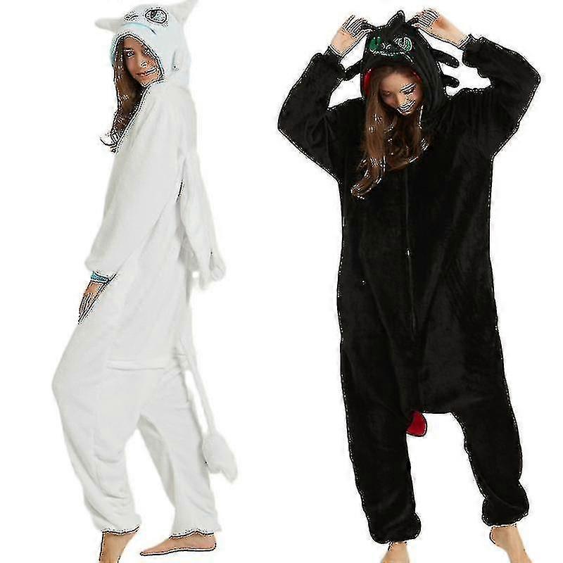 Toothless Dragon White Black Onesie Adult Unisex Flannel Pajama Anime Cosplay Costume Train Your Night Fury Sleepwear V
