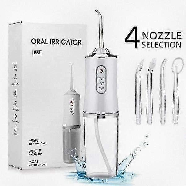 Dental Water Flosser Spotlight \u2013 Sladdl\u00F6s och Professionell Oral Irrigator f\u00F6r Renare och Vitare T\u00E4nder Letar du efter en effektiv l\u00F6sning f\u00F6r b\u00E4ttre munh\u00E4lsa och ett bl\u00E4nde leende? Uppt\u00E4ck Dental Wireless 4-i-1 Water Flosser \u2013 det ultimata verktyget f\u00F6r tv\u00E5rd hemma och p\u00E5 resan. Denna innovativa vattentborste kombinerar funktionalitet och portabilitet f\u00F6r att ge dig en komplett och skonsam reng\u00F6ring varje dag. 4-i-1 Multifunktionell Design f\u00F6r Optimerad Tv\u00E5rd Denna sladdl\u00F6sa oral irrigator erbjuder en avancerad 4-i-1-funktion: Djup reng\u00F6ring f\u00F6r att ta bort matrester och tsten. Tk\u00F6ttsmassage som f\u00F6rb\u00E4ttrar blodcirkulationen och f\u00F6rebygger inflammationer. Tblekning f\u00F6r ljusare och friskare t\u00E4nder. Munsprayfunktion som s\u00E4kerst\u00E4ller varaktig fr\u00E4sch edr\u00E4kt. Med en energispare teknologi och milj\u00F6v\u00E4nlig design \u00E4r den b\u00E5de h\u00E5llbar och skonsam f\u00F6r milj\u00F6n. Sladdl\u00F6s och L\u00E4tt att Ta med Sig Med sin sladdl\u00F6sa och kompakta design kan du njuta av full r\u00F6relsefrihet utan kr\u00E5ngel med sladdar. Den l\u00E4tta och portabla konstruktionen g\u00F6r den idealisk f\u00F6r b\u00E5de dagligt bruk hemma och som en f\u00F6ljeslagare under resor. H\u00E5ll din munh\u00E4lsa i toppskick, var du \u00E4n befinner dig. F\u00F6rdelar med Dental Wireless Water Flosser: F\u00F6rb\u00E4ttrar munh\u00E4lsan genom att n\u00E5 omr\u00E5den d\u00E4r vanlig tborstning inte r\u00E4cker till. Hj\u00E4lper till att minska risken f\u00F6r karies och tk\u00F6ttssjukdomar. Enkel att anv\u00E4nda och anpassad f\u00F6r b\u00E5de vuxna och barn. Specifikationer: Modell: 6886 Oral Irrigator Material: Slitstarkt ABS M\u00E4rksp\u00E4nning: DC 3.7V Effekt: 3.5W Storlek: 21 x 5.8 cm F\u00E4rg: Elegant vit Vad som Ing\u00E5r i Paketet: 1 x Borsthuvud 1 x USB-laddningskabel 1 x Bruksanvisning En Revolution Inom Tv\u00E5rd \u2013 Din Nyckel till Ett Sj\u00E4lvs\u00E4kert Leende Ge dina t\u00E4nder och tk\u00F6tt den k\u00E4rlek de f\u00F6rtj\u00E4nar med Dental Wireless 4-i-1 Water Flosser. Upplev en ny stard inom tv\u00E5rd och njut av friskare t\u00E4nder, starkare tk\u00F6tt och ett str\u00E5le leende. Perfekt som g\u00E5va eller f\u00F6r hela familjen Best\u00E4ll nu och ta det f\u00F6rsta steget mot optimal munh\u00E4lsa