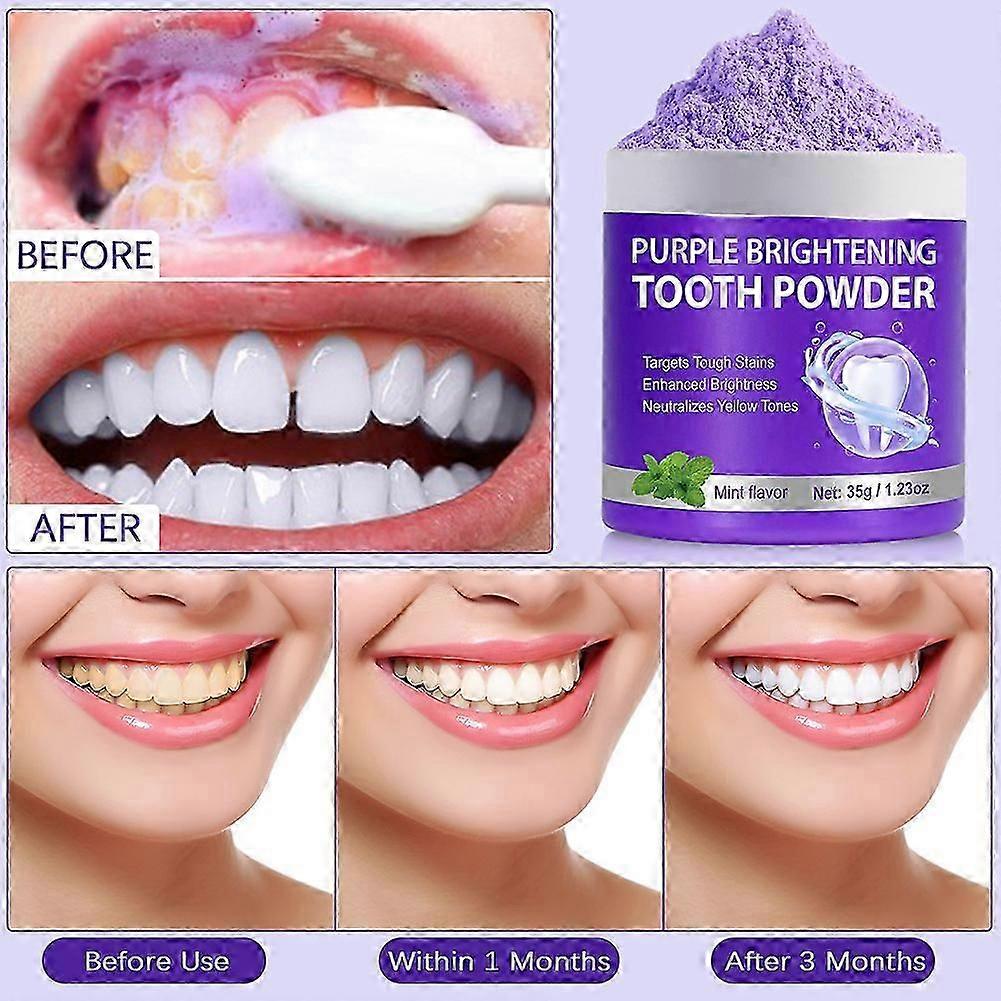 Tooth Whitening Powder - Purple Brightening, Stain Removal & Breath Refreshing Powder for Sensitive Teeth, Home & Travel Use for Adults and Kids