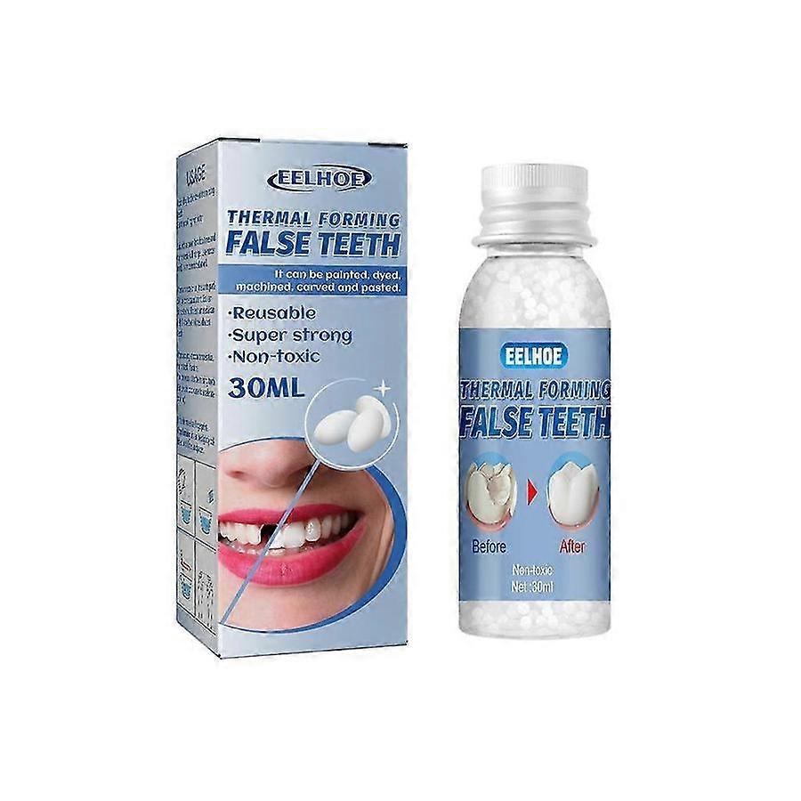 Features:<br> <br> Multifunction:<br> <br> Our temporary dental restorations are suitable for many occasions, can help you fill and repair lost and broken teeth, suitable for immediate and temporary use. It can also be used in role-playing, participating in parties, and providing you with different decorations.<br> <br> No more embarrassment:<br> <br> This replacement bead tooth is a practical assistant when going out or on some important occasions (such as appointments, meetings, reports, parties or gatherings). It can avoid some embarrassment. The lightweight size is also suitable for you to carry when traveling or on business.<br> <br> Suitable for adults and children, especially for Halloween parties.<br> <br> Vampire Teeth Glue, suitable for unisex at Halloween costume parties, vampires and other creatures of the night.<br> <br> Suitable for all kinds of funny and weird front teeth, which will surely make your friends laugh.<br> <br> Usage method<br> <br> According to the size of the missing teeth(12 granules, more or less doesn't matter.) Put it in boiling hot water(the water needs to exceed 130 degrees to soften and become flexible),Stir with a spoon for a few times and the material will merge.Like rubber mud, it can be molded at will.<br> <br> After a minute or so, the white particles become translucent. You can shape teeth.The extra material can help fix the back of the adjacent teeth.<br> <br> After cooling at room temperature, the material hardens.You can wear it to the missing tooth (Rinse with cold water to accelerate cooling)<br> <br> If the denture has fingerprints, After forming, it can be slightly polished with fine sandpaper.<br> <br> Specifications:<br> <br> Specification:<br> <br> <br> <br> Condition: New<br> <br> <br> <br> Name: Denture glue<br> <br> <br> <br> Color: white<br> <br> <br> <br> Net content:30g<br> <br> <br> <br> Non-toxic, tasteless and environmentally friendly.<br> <br> Package Included:<br> <br> 1 bottle of teether