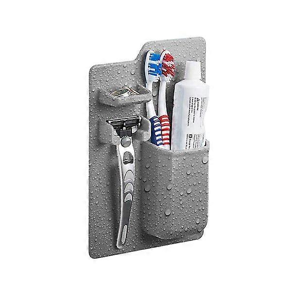 The mounted toothbrush holder is made of food grade silicone material.$ which is safe, environmentally friendly, soft and tear resistant.$Super waterproof, wear-resistant and sticky, the bottom drain hole is designed to avoid water accumulation and keep dry and hygienic.$toothbrush holder for bathroom, shower, dressing table mirror, for storing toothbrushes, toothpaste, razors, eyebrow pencils and other cosmetics, suitable for all people.$Wipe the dust on the wall and stick it to the smooth surface of glass, tile, mirror, marble, etc., and must be free of dust and cracks.