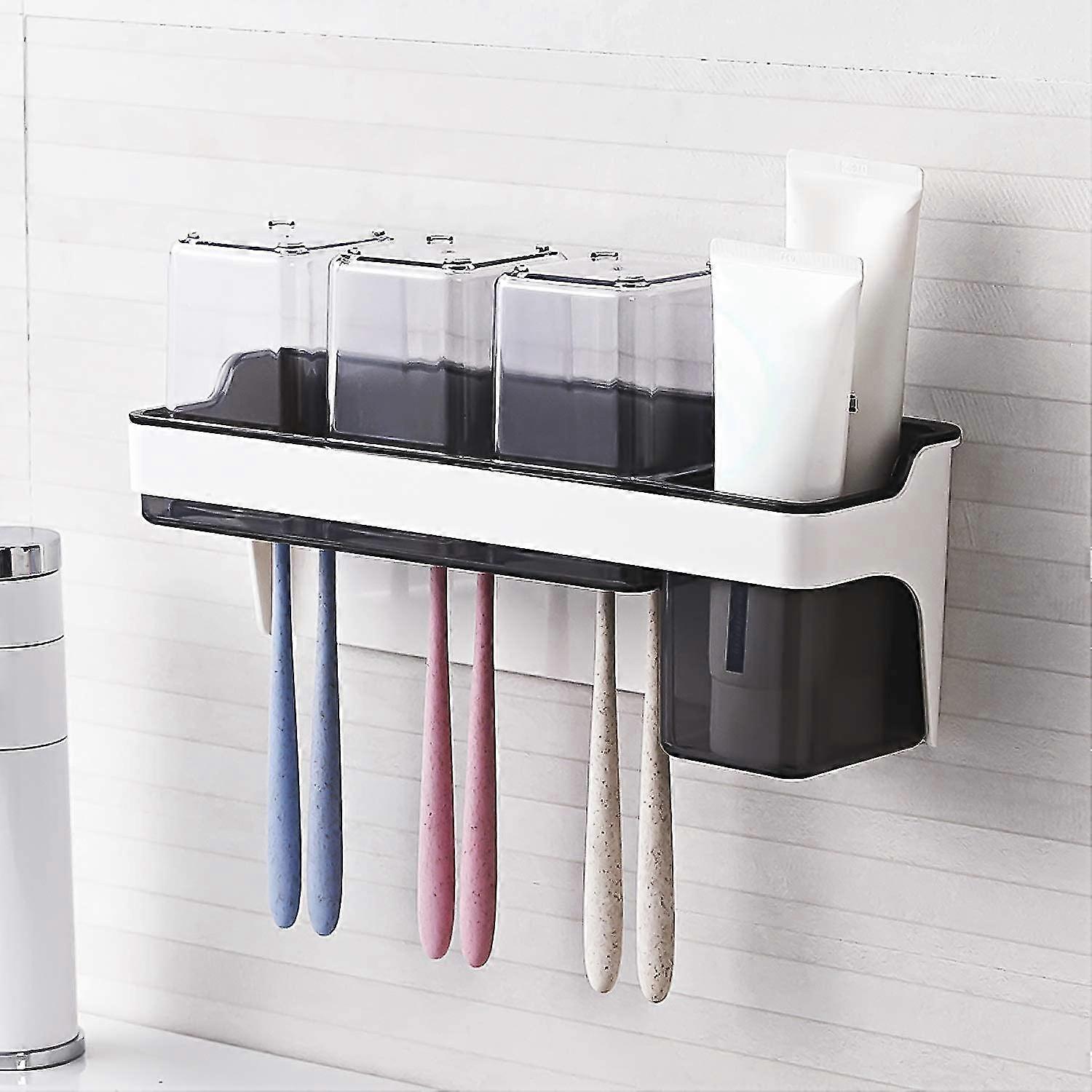 For Toothbrush Holder Wall Mounted Large Capacity Multiple Toothbrush Holder for Bathroom 3 Cups Kids